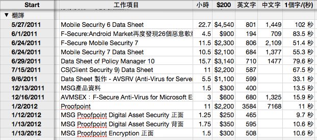 以上面這張 Data Sheet 為例,此文章共有七個部分,每個部分 15 分鐘,則可預估翻譯花費時間應為 1.75 個小時,自己就要心裡有底要在這個時間內全部做完,不然就可能會影響其他工作的進度。