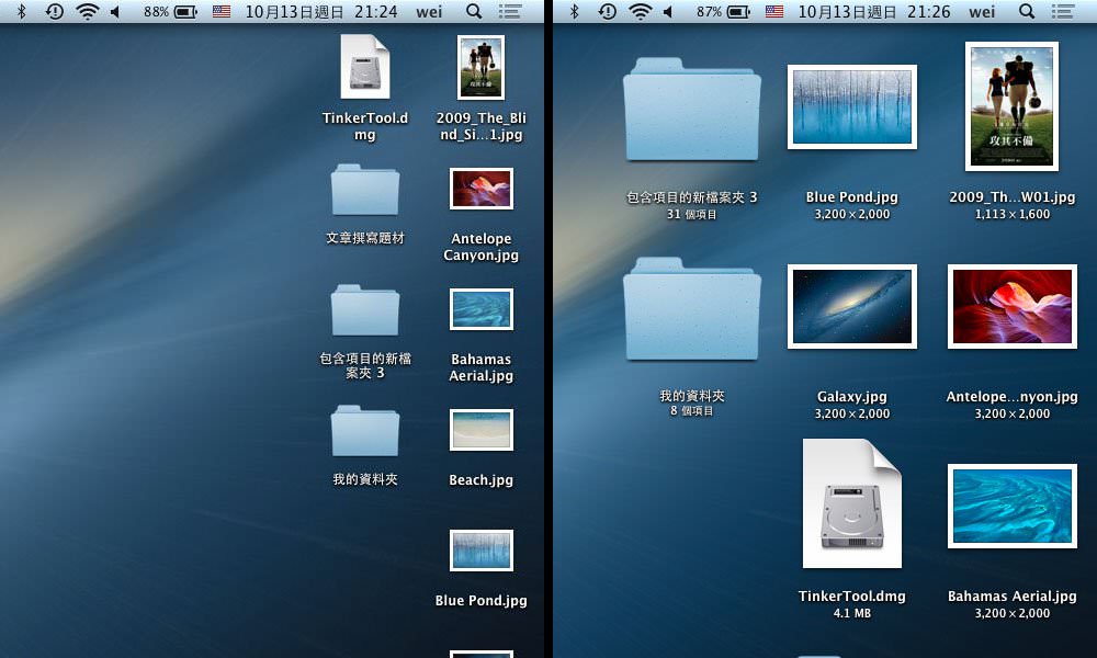 之前曾經有人問我為什麼要把 Mac 的桌面圖示放那麼大?其實只是比較好點罷了,再加上我很常處理圖片的東西,因此看到預覽圖很重要。要更改 Mac 桌面圖示非常簡單,在 Finder 桌面上按 Command-J 就可以「打開顯示方式選項」,裡頭就會看到設定了,預設圖像大小都是 64 x 64。