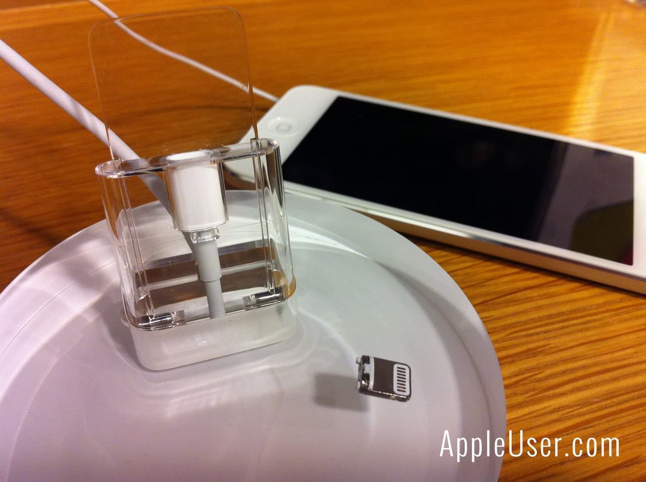 目前 Apple 官方提供的新款 iPod touch 展示架(具備 Lightning 接頭,與 iPhone 5 相同),因為設計不良,很容易導致顧客在拿取 iPod touch 的時候不小心把 Lightning 接頭弄斷,短短幾週的展示時間,部分授權經銷商已陸續有災情傳出,大家逛 Apple 門市時小心一點吧。