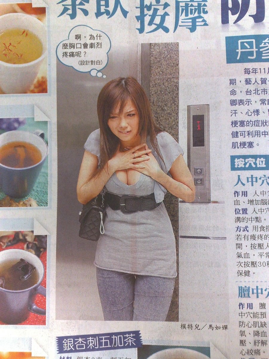 蘋果日報竟然可以在「健康醫療版」默默地放這種露半顆奶的插圖,我歎為觀止,早餐吃到一半就馬上拍了下來。而且 女模特兒 的表情還很配合演出...