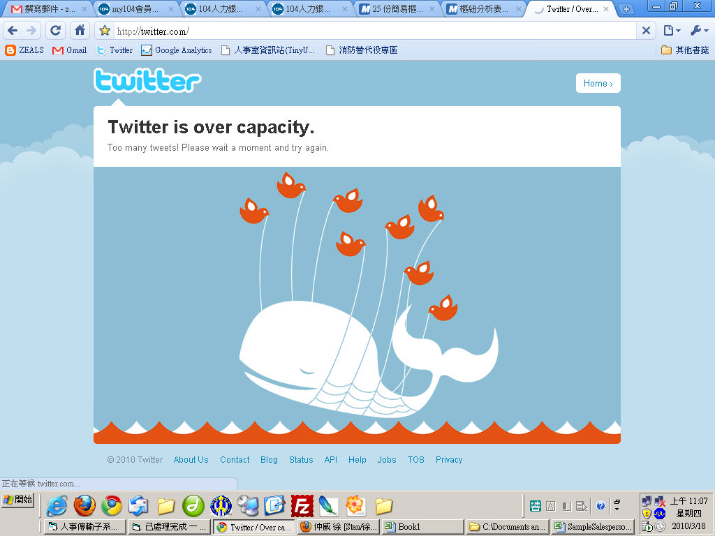 今天早上差不多上午11點的時候,Twitter 發生了流量過大的問題導致無法進入網站。那時的我原本是想 tweet 一些東西上去的,剛看到畫面的時候我很吃驚,想說全地球最大的微網誌系統竟然當機了!當下是立刻皺了一下眉頭。