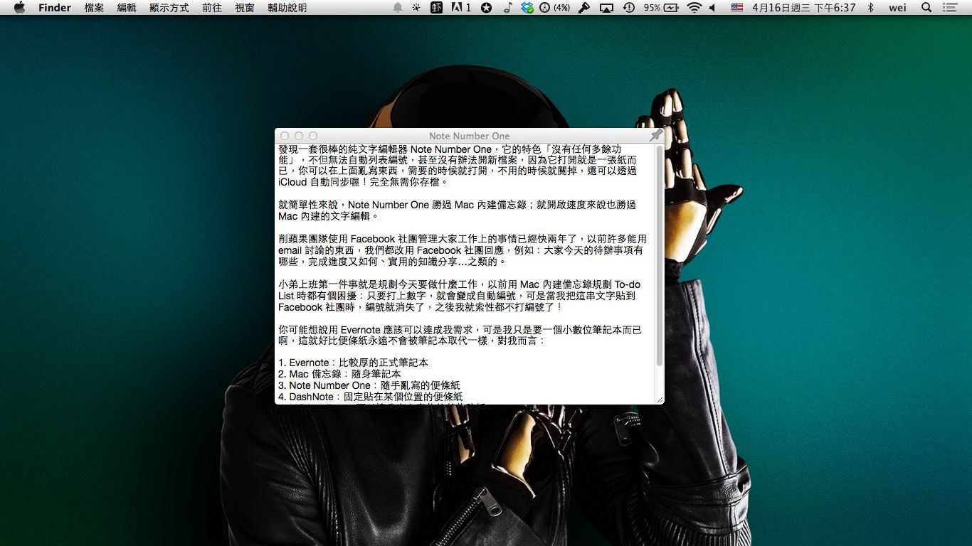 Note Number One 還有另一個特點,就是下次打開的視窗大小會跟上一次一樣,對於像我這種外接大螢幕使用者,是非常好的功能!