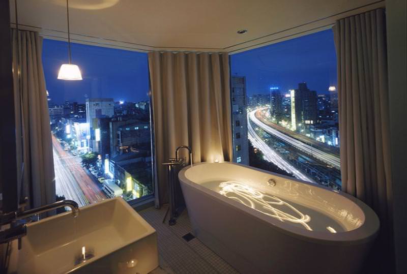 Ambience Hotel 很特別,它是號稱台灣第一家「大膽採用白色為空間概念」的精品飯店,具有強烈的北歐現代風格,在裝潢上,大量使用石材、不鏽鋼、玻璃、鏡面以及壓克力等冷調材質,同時再搭配溫暖的燈光、燭光、精油和背景音樂等軟性元素,給住房的旅客一種結合溫暖及冰冷的感受,享受放鬆。