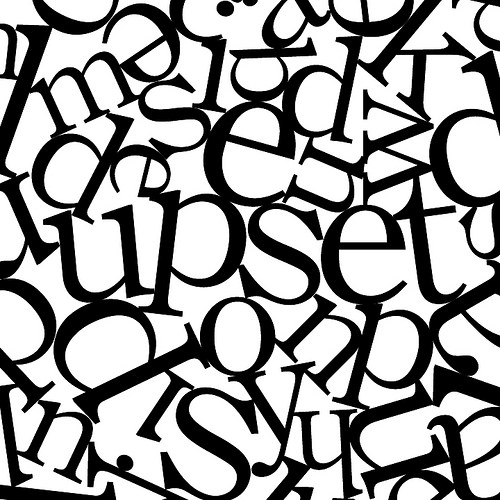 即便我的思緒再怎麼紛亂,我仍然很明確的知道我是處於「upset」的狀態。其他足以形容我心情的字母分別是:unhappy、depress、down、dislike、bad、melancholy、blue,分別嵌在我的腦中。