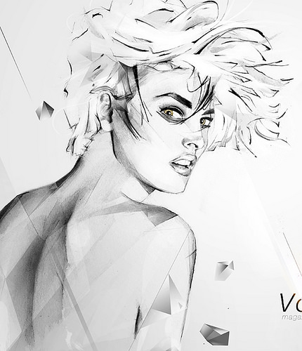 (又是無意間!)無意間 在網路上看到 Alexis Marcou 的作品,我馬上就著迷了。他的作品融合了素描、水墨與電繪的元素,不但保有了素描無可取代的筆觸,更用水墨來增加層次,最後再利用繪圖軟體加入文字、色塊、線條,將作品「開光」。多半是灰階的作品,特別適合我這種對不諳色彩的人啊...