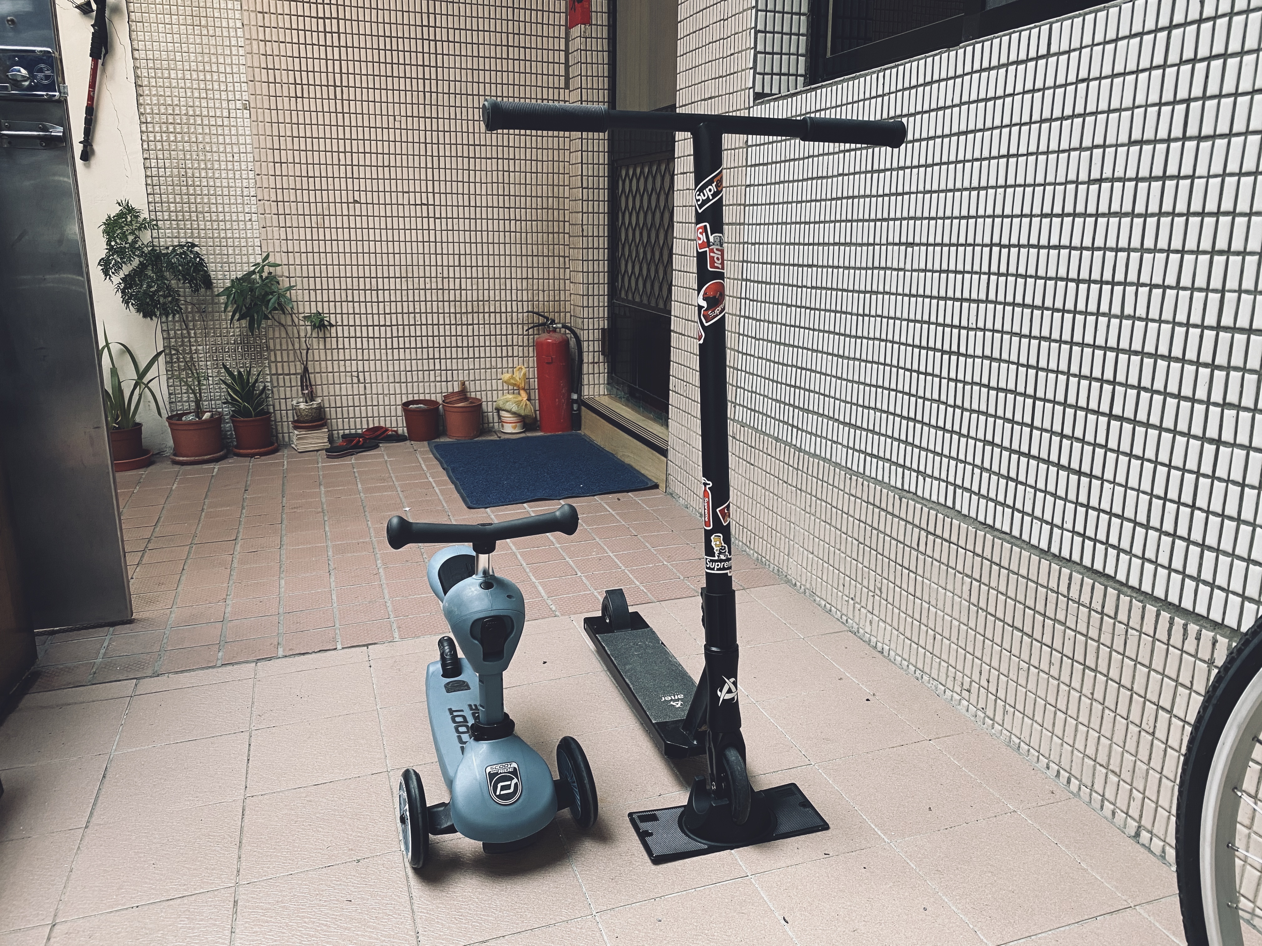 特技滑板車,台灣迪卡儂的比較小台,所以我是從淘寶買,雖然踏面我還是覺得有點小,不過應該是為了怕影響動作,所以沒有做得像電動滑板車那麼大吧!