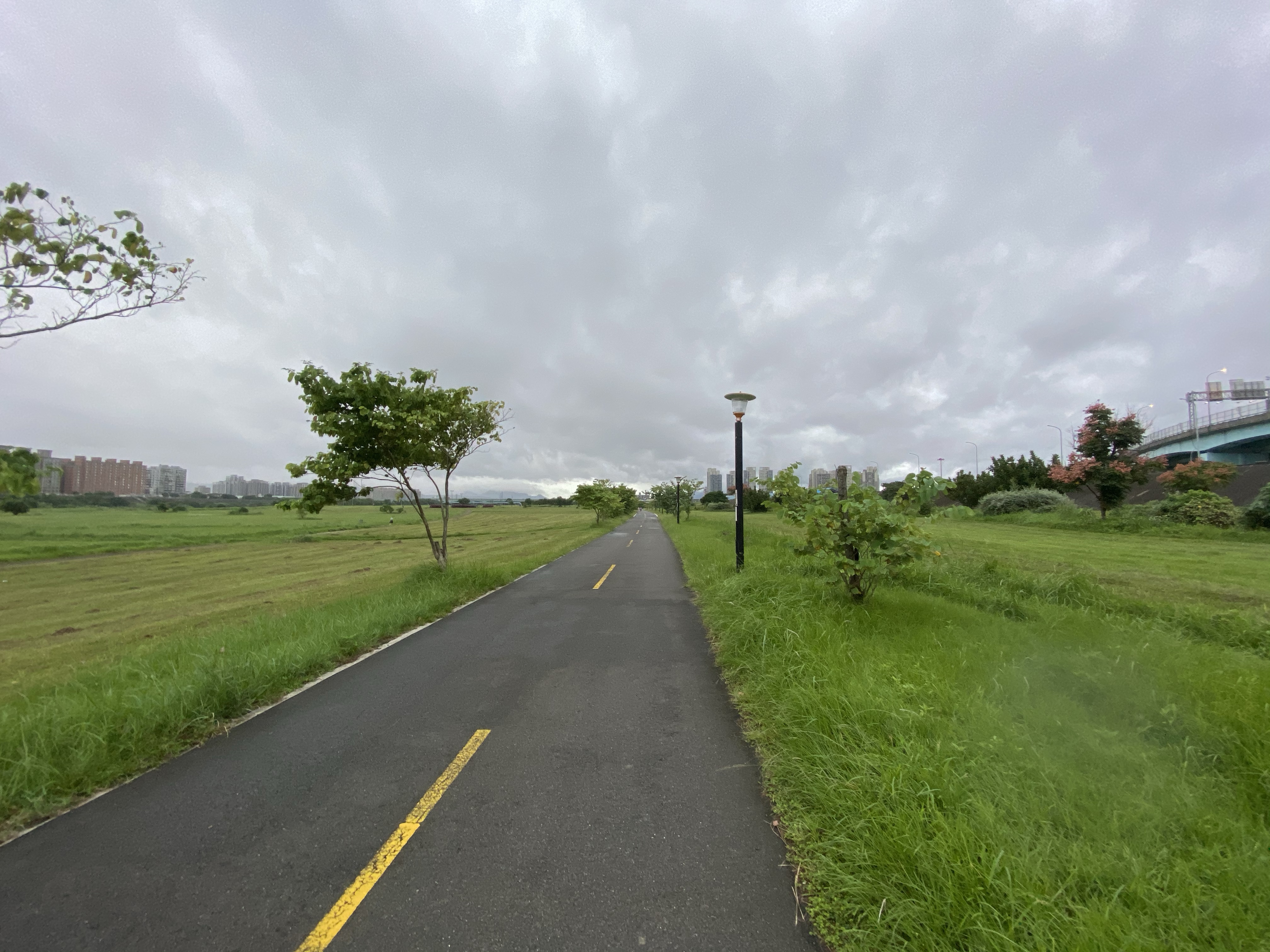 出發之後,才發現自己忘了戴眼鏡與手套,果然是太久沒騎了,但想到回家可能就難以出門了,於是就直接出發了。騎了一下,發現今天應該會下雨,而且我完全忘記今天 08:20 還要載強者我太太去公司上班(因為目前家裡只有一台摩托車可騎),所以決定騎平路就好,就在河濱吧!