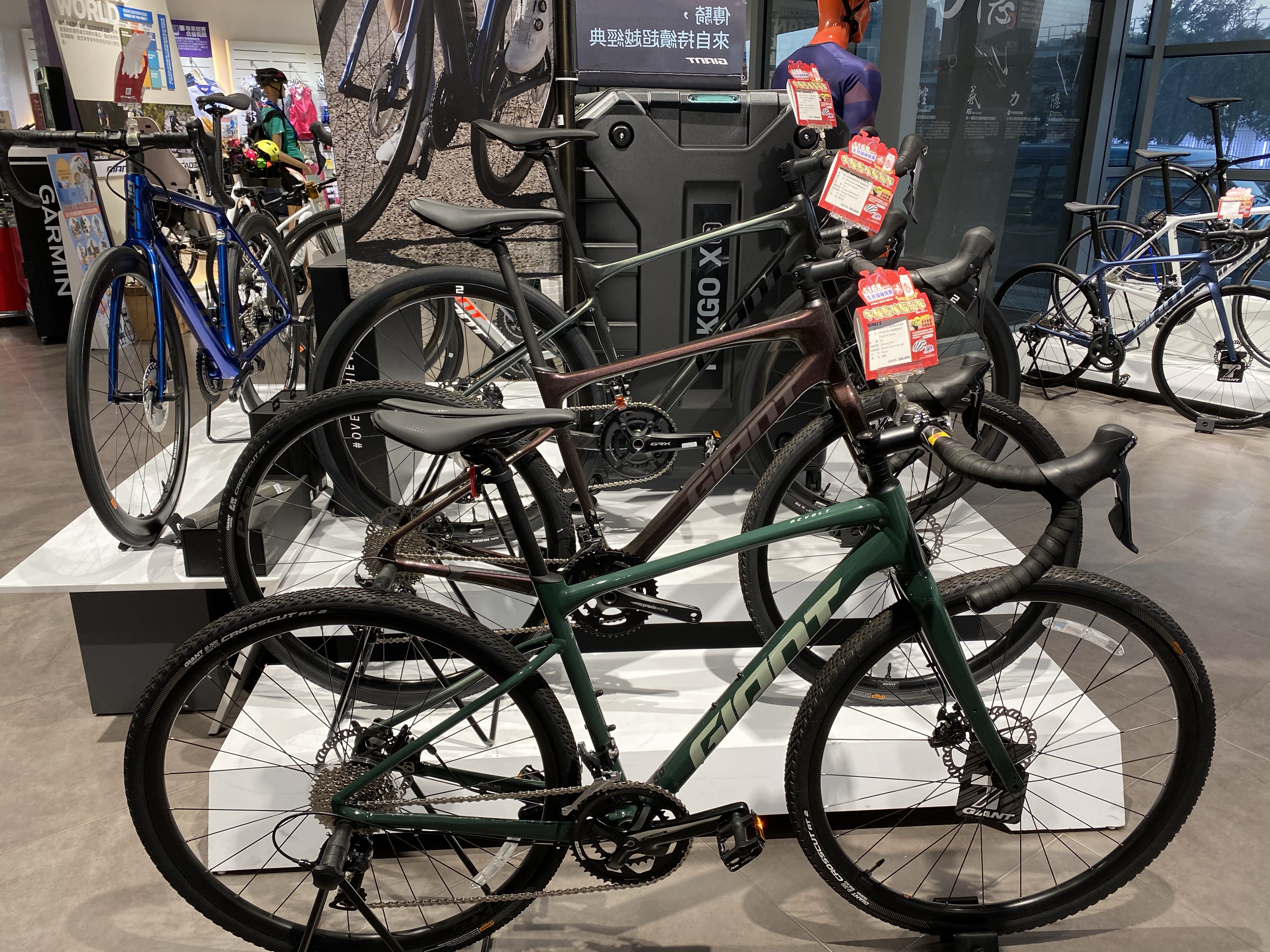 另外,也順便請教技師 Defy 與 Revolt 車架的差異性,技師說,雖然 Defy 與 Revolt 的車架有點類似,不過他們在碳布堆疊的方式有所不同,Revolt 更強調吸震的效果以及剛性。所以,嚴格來說,雖然 Defy 換顆粒胎還是可以去騎 Gravel 路線,但是對車架還是有可能會有一點損傷。