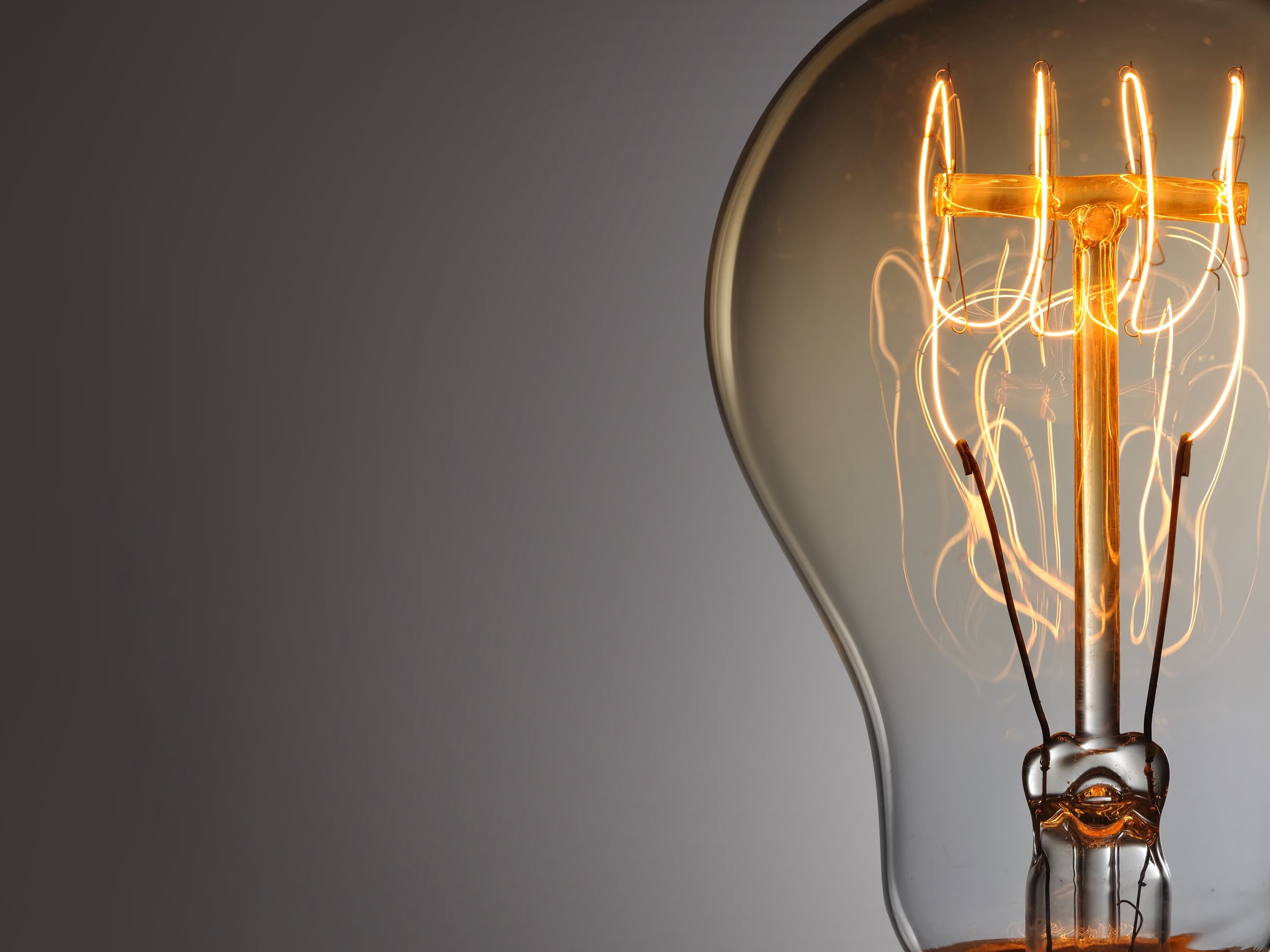 由於 Logo 圖像是以彩色圓點所構成,因此在第一版的提案中,配色是直接透過 CSS 效果做出彩色的漸層色,同時,首頁第一屏也是從商用圖庫中,選擇具有彩色背景漸層意象的圖片,做為抽象背景。在第一次的提案之後,客戶表示希望可以改用具象的圖片,因此提供我們你現在看到的這張發光鎢絲燈泡照片,我們在經過照片置換後,連帶地調整整個頁面的排版與配色,最後結果就是你現在看到的樣子。