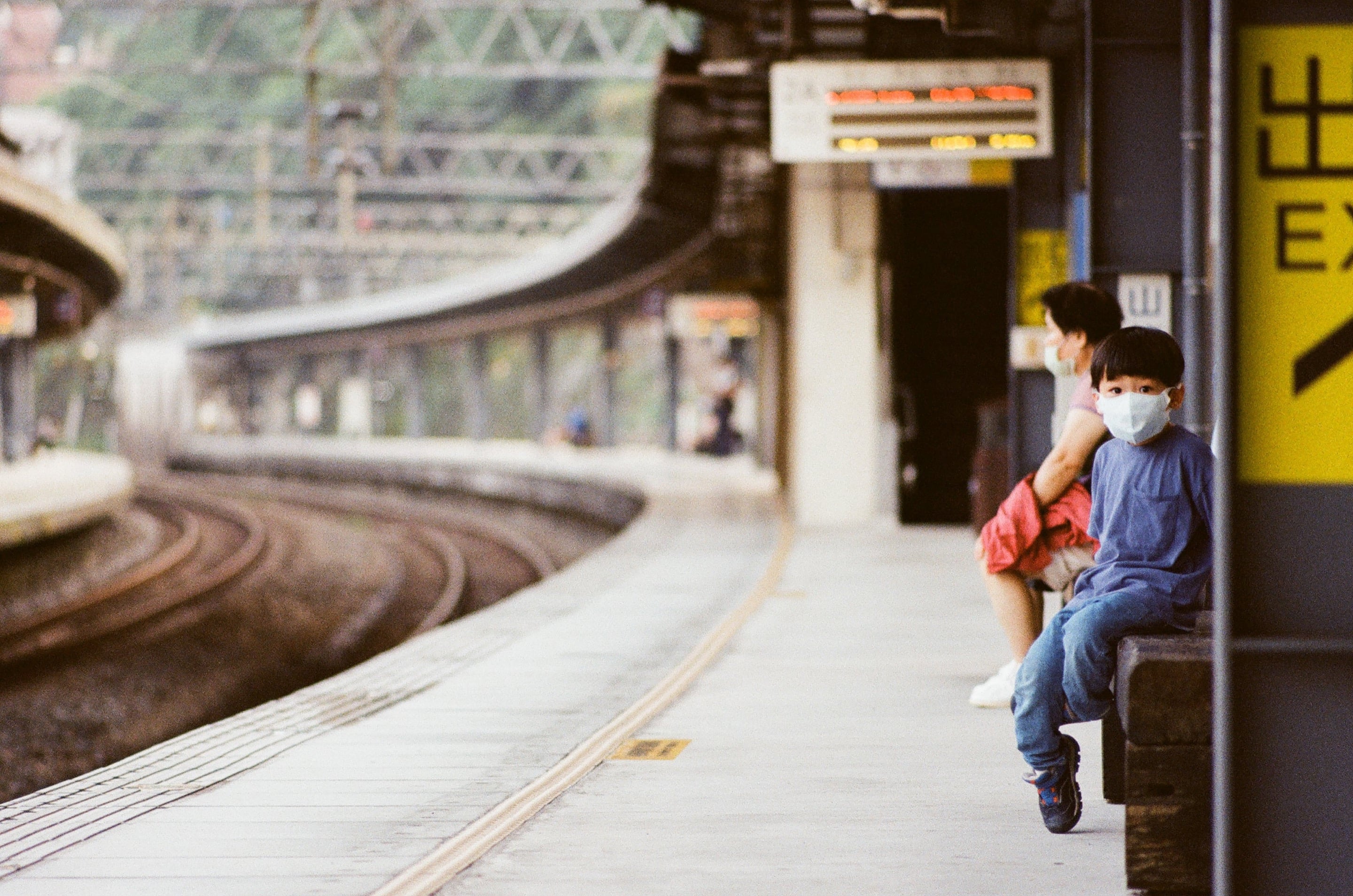 拿著 135mm 的鏡頭,要拍這張需要距離兒子大概 20 公尺,常常會閃過萬一他突然衝下月台,我來得及衝過去嗎?Olympus 135mm f2.8(1/1000s,f2.8)