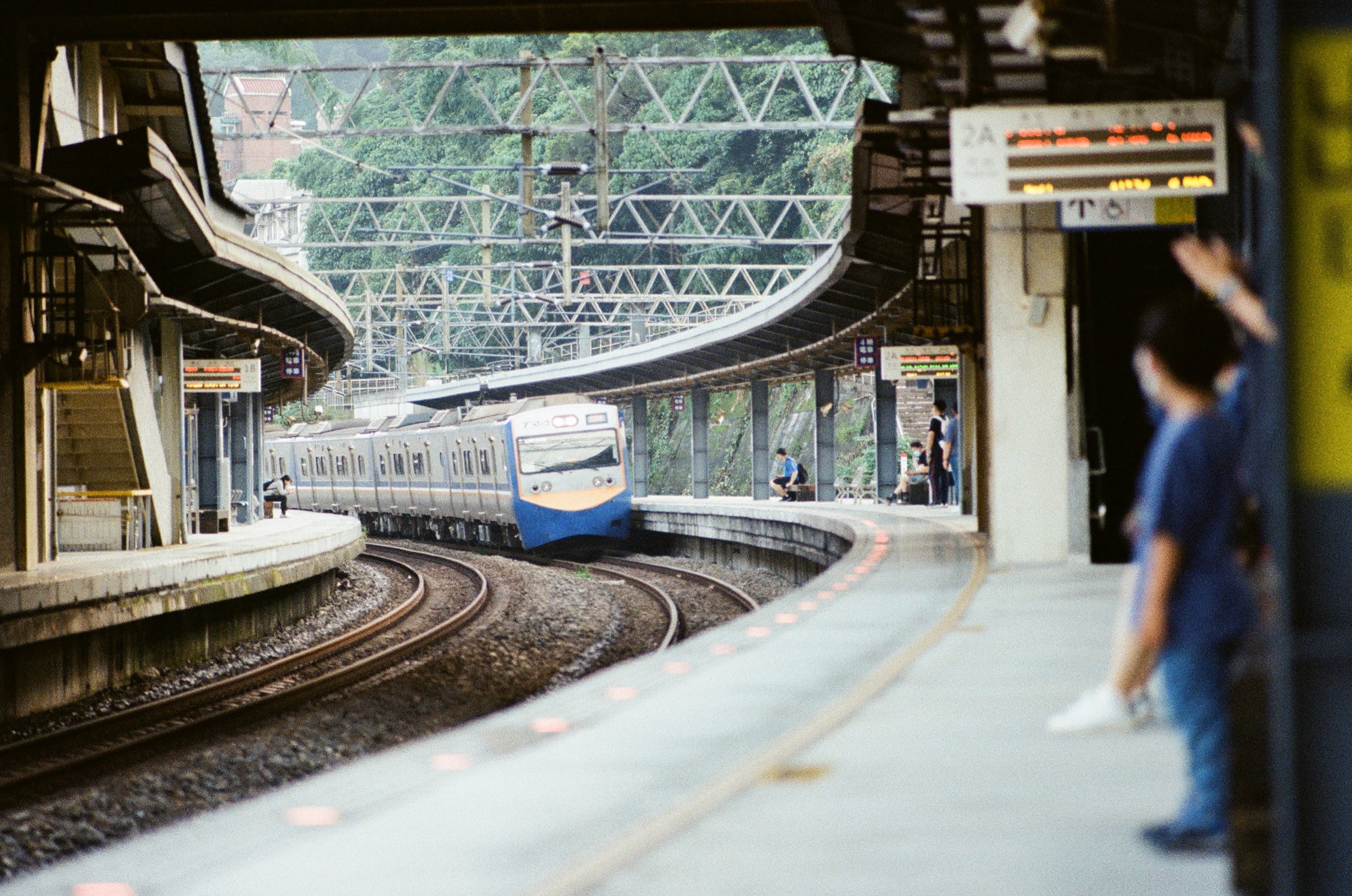 下課後,帶兒子去南樹林火車站看火車,這邊的站務人員都很友善。Olympus 135mm f2.8(1/1000s,f2.8)