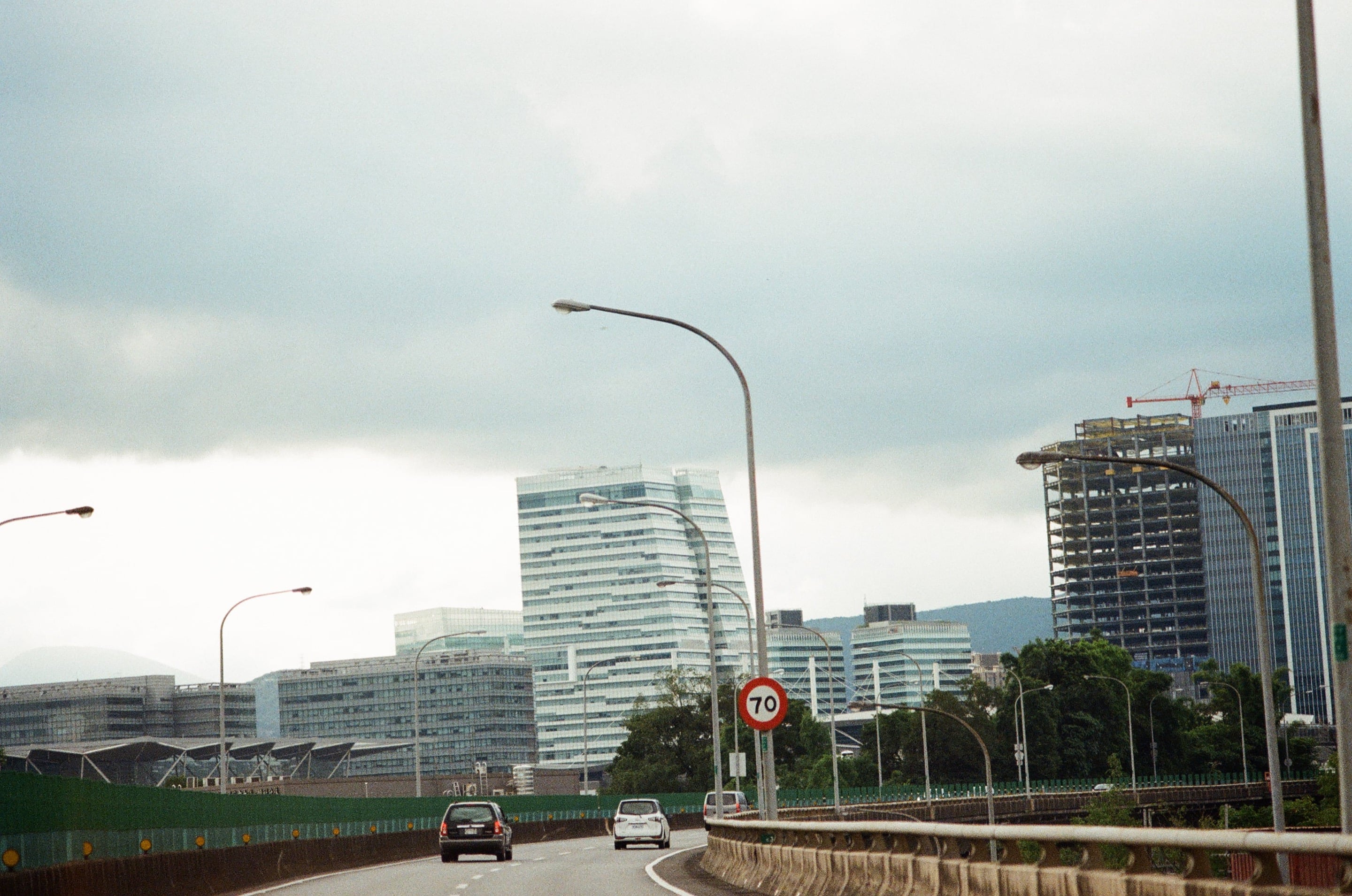自從開始拍底片之後,就很喜歡坐在副駕駛座,因為可以拍照。圖為接到我太太下班後,我們在高速公路回家路上。Olympus 100mm f2.8