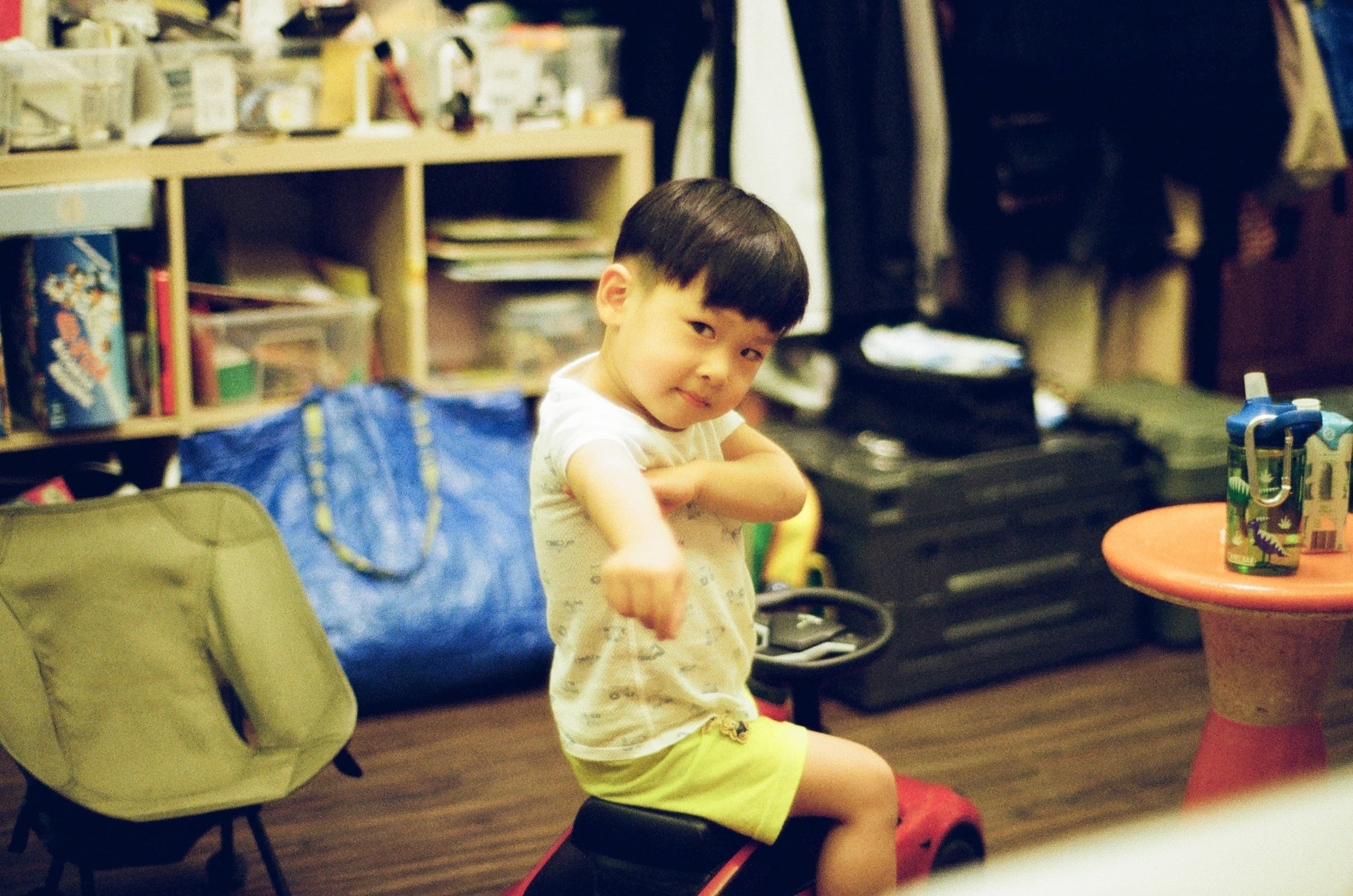 最近叫我兒子擺個姿勢,他都擺這個。拍了好多張,才知道魚鱗王的光圈全開本身就會自帶柔焦效果,之前一直覺得是鏡頭壞了。Olympus 55mm f1.2(1/60s,f1.2)