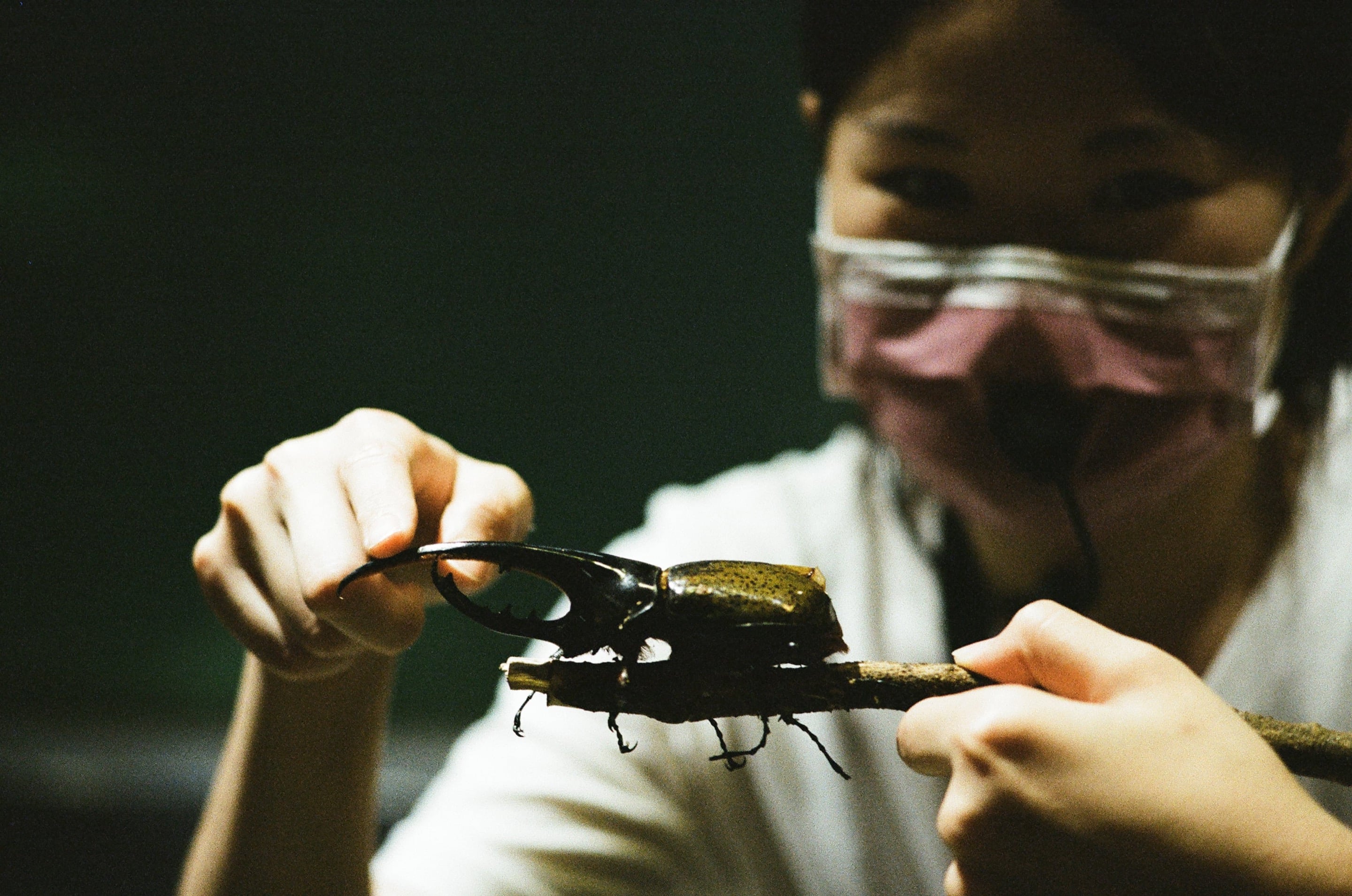 去新竹動物園旁邊的台灣昆蟲館逛逛順便上課,老師正在介紹赫克力士長戟大兜蟲。台灣沒有兜蟲,只有獨角仙,但其實獨角仙也是一種兜蟲。Olympus 100mm f2.8(1/60s,f2.8)