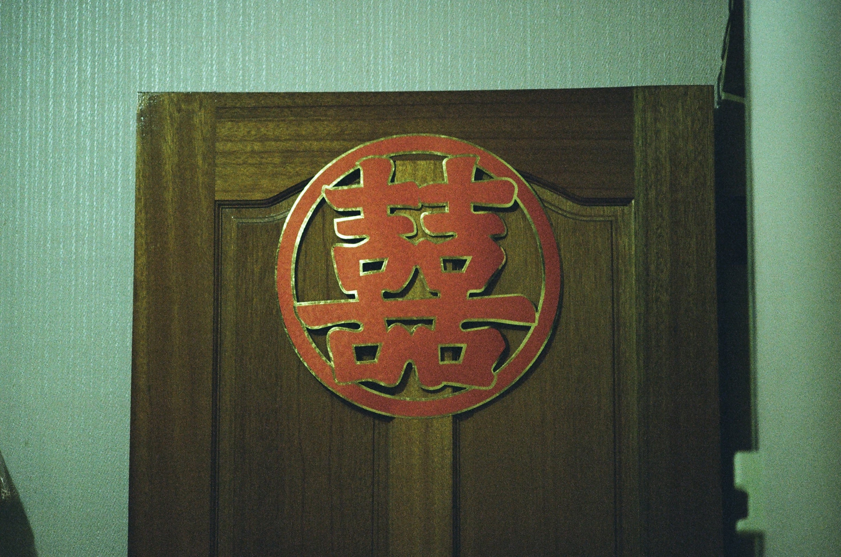 我太太娘家房間的那個囍字到現在還掛著。Olympus 100mm f2.8(1/60s,f2.8)