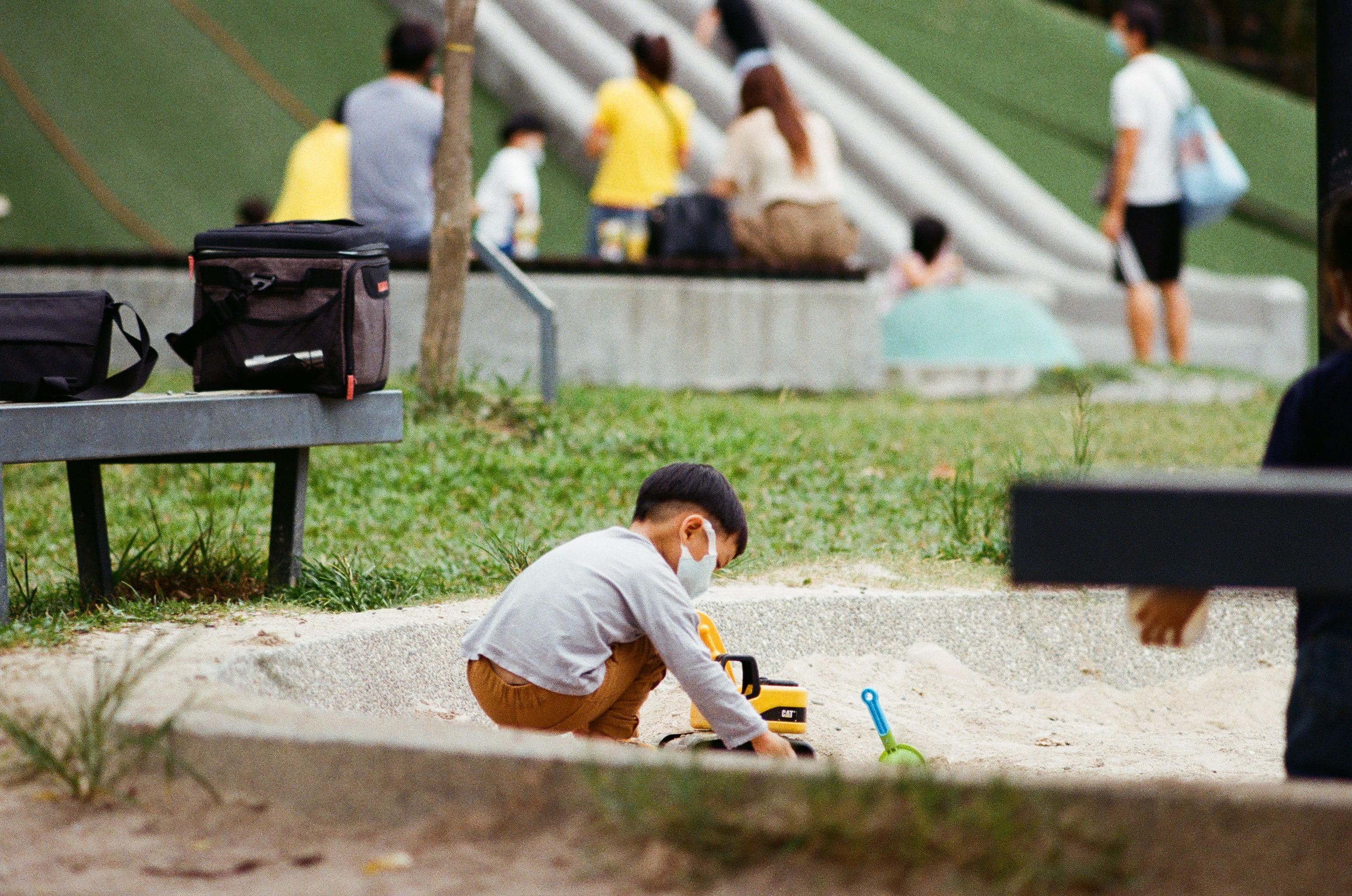 這張是有次下課帶兒子去新北土城「斬龍山遺址文化公園」玩沙拍的,斬龍山的沙況其實不錯,而且重點是沙池周圍是可以坐的,對於陪玩的大人來說比較不累,比較不會蹲到腿痠。