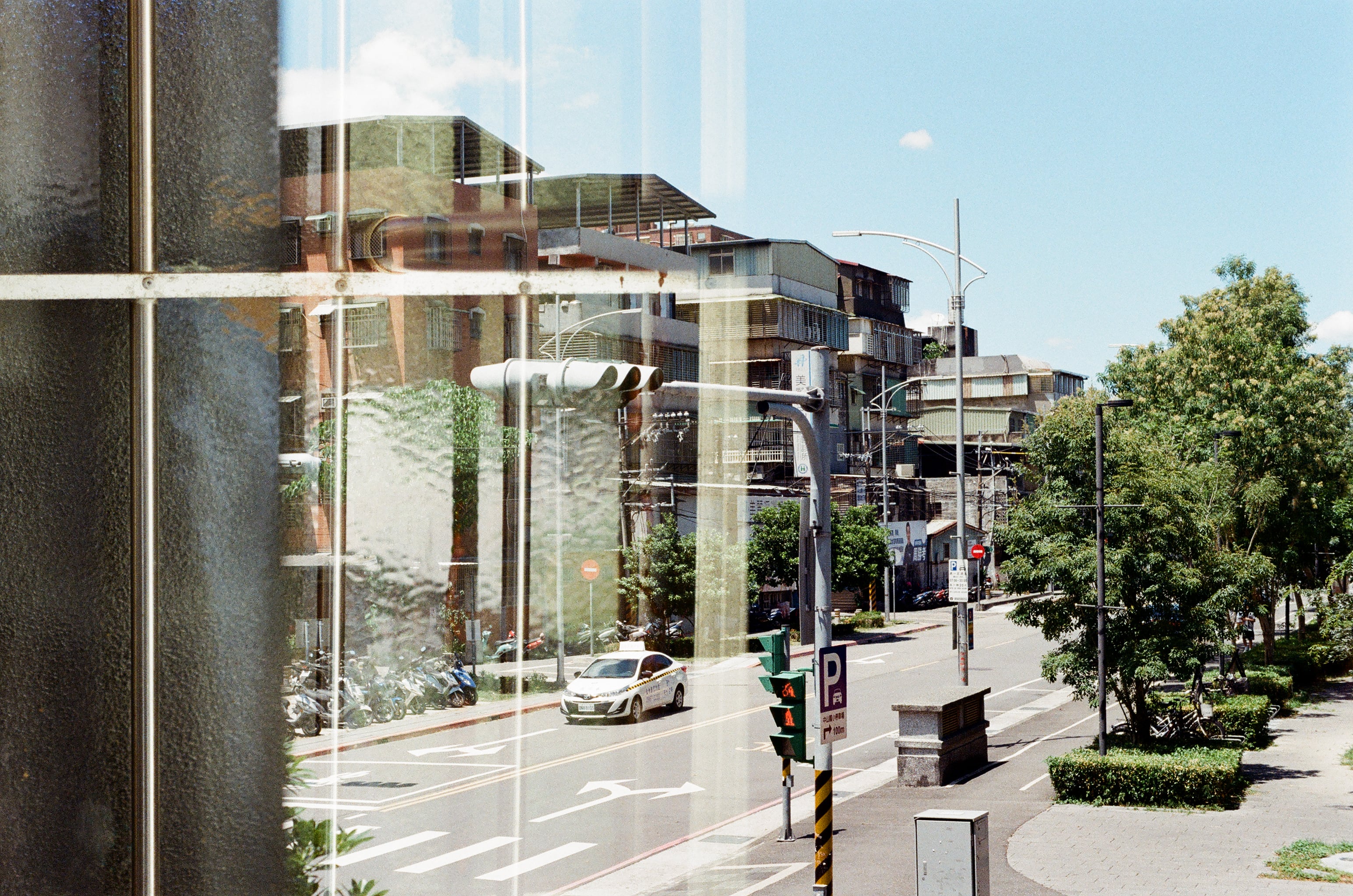 趁著等紅綠燈,又試了一次重曝,發現似乎過去的重曝,兩張照片都沒有對在同一個位置上,不知道是過片操作上的問題還是這台 OM-10 相機的問題。