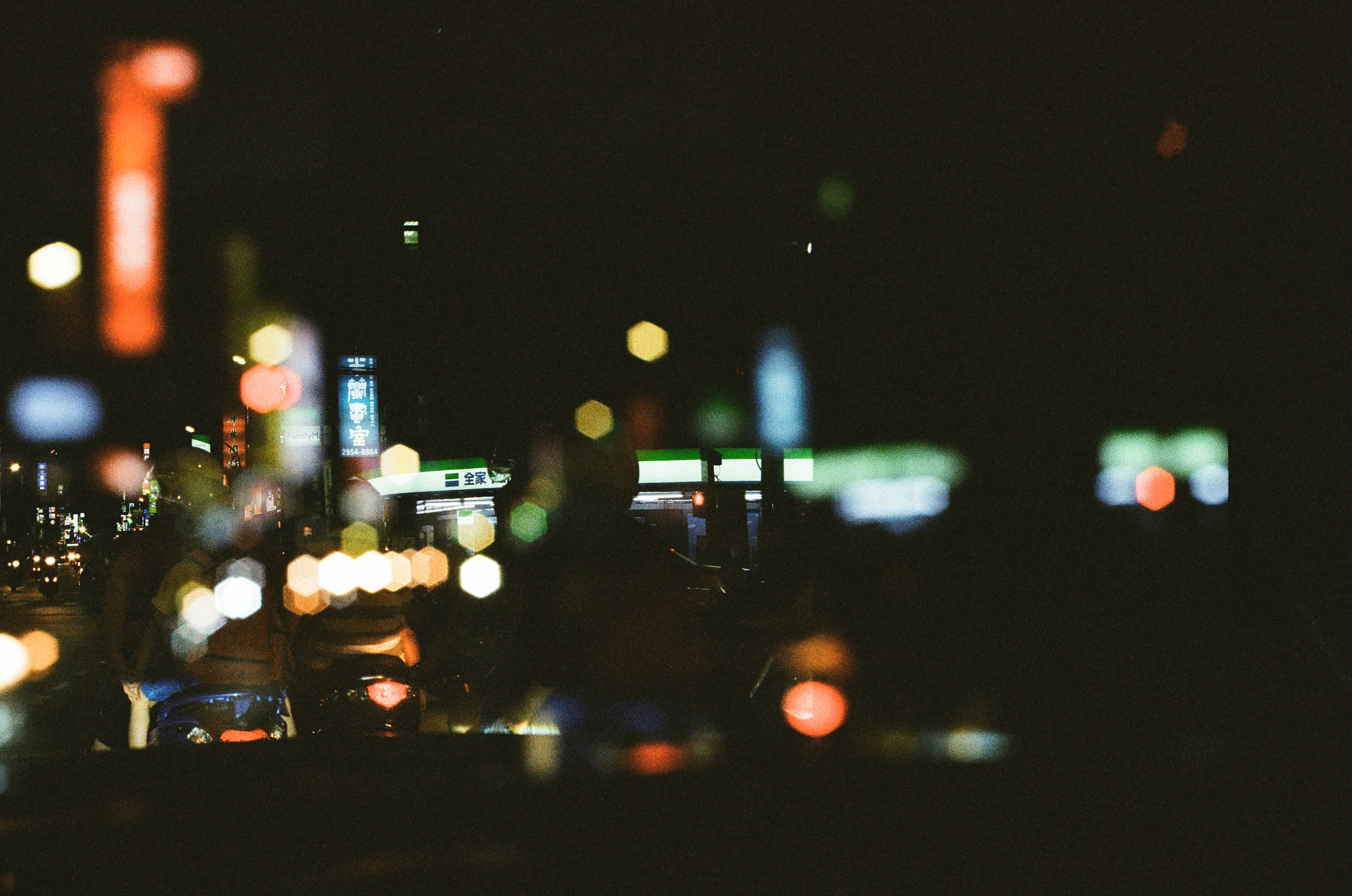 Olympus 35mm f2(第一張夜晚街道,f5.6,1/60s;第二張同構圖失焦,f5.6,1/60s)