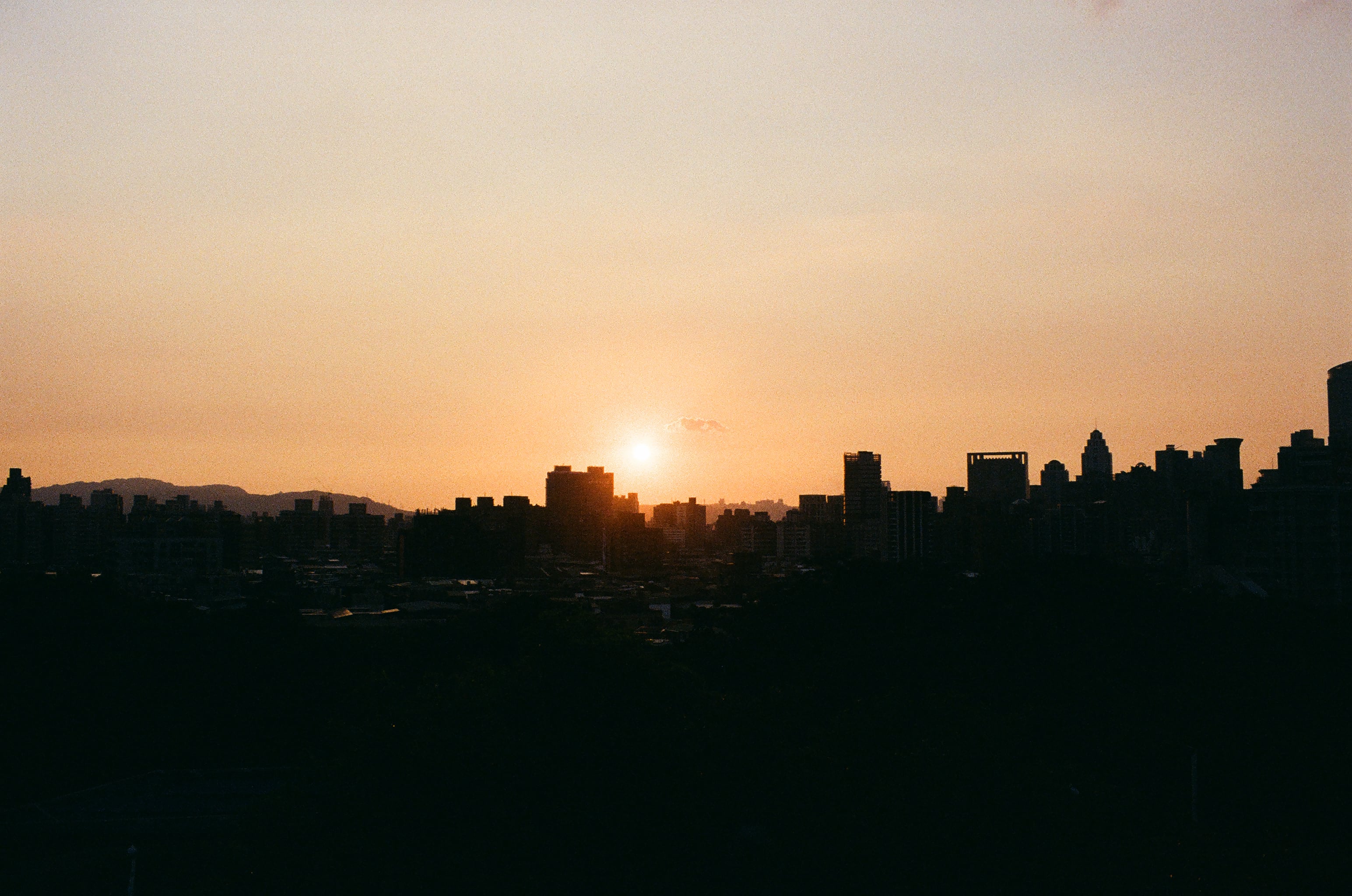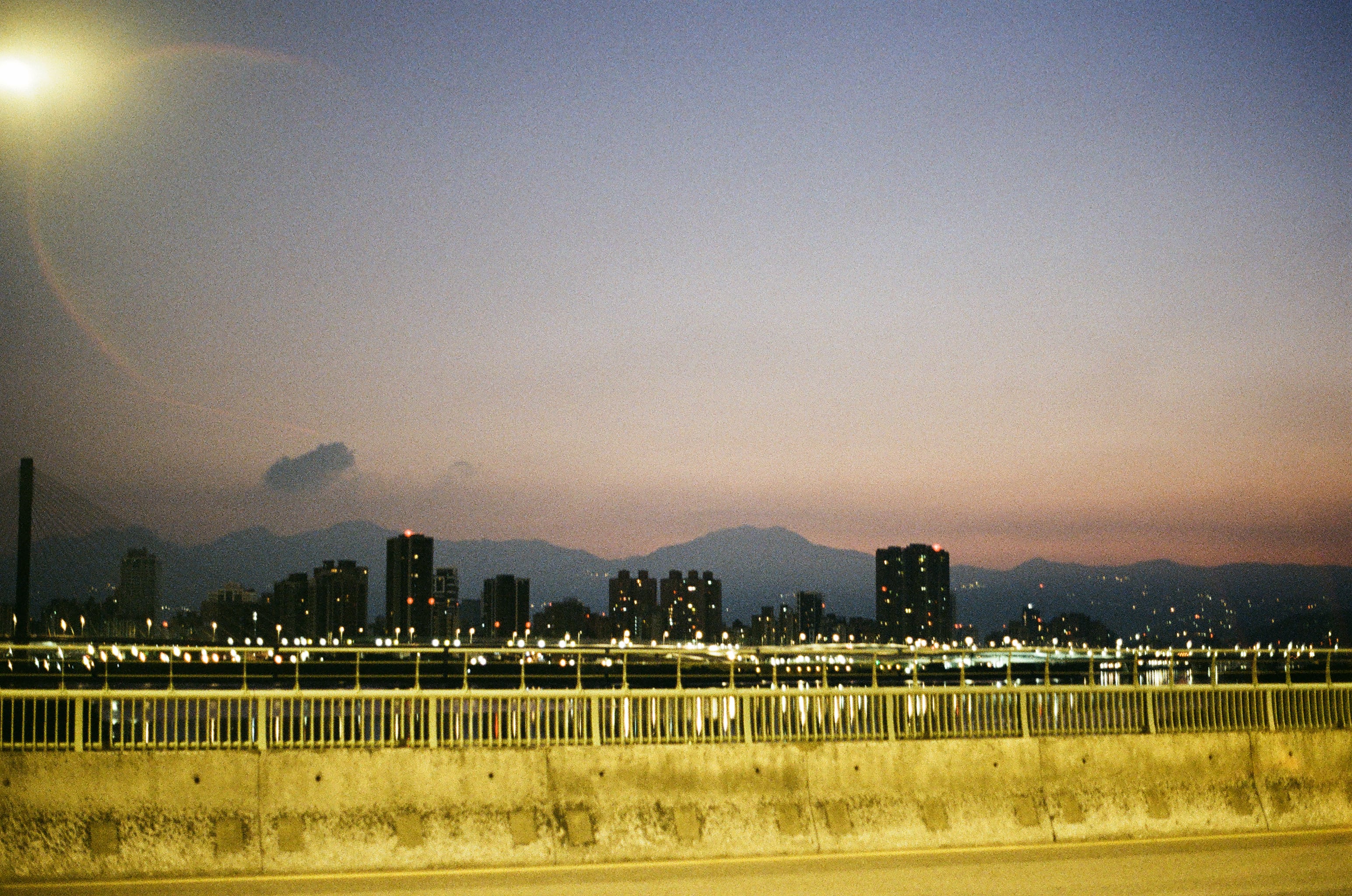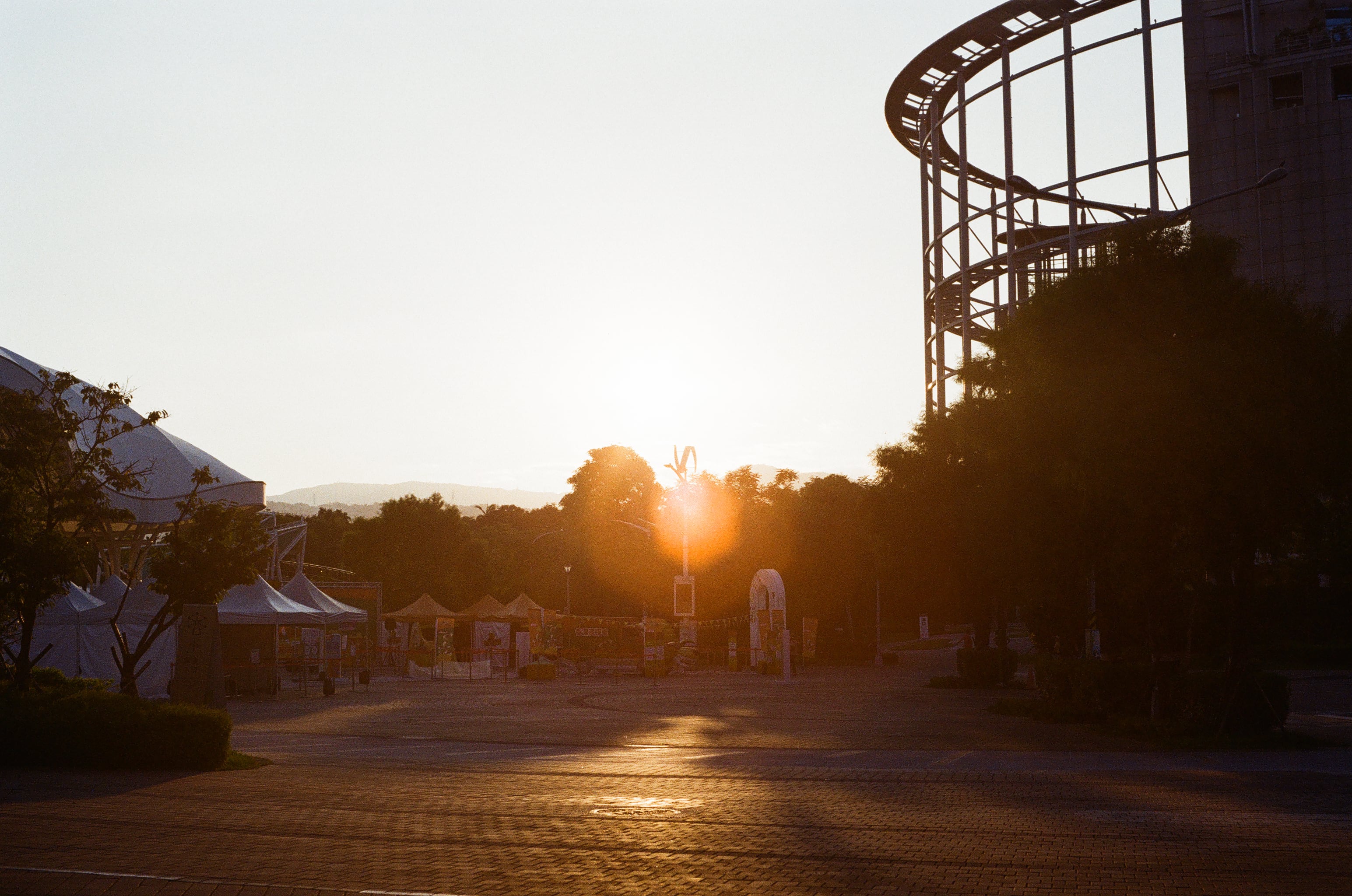新北中和「員山公園」的夕陽,我在拍這張的同時也慫恿兒子拿出他的 Konica 現場監督 28HG 出來拍。