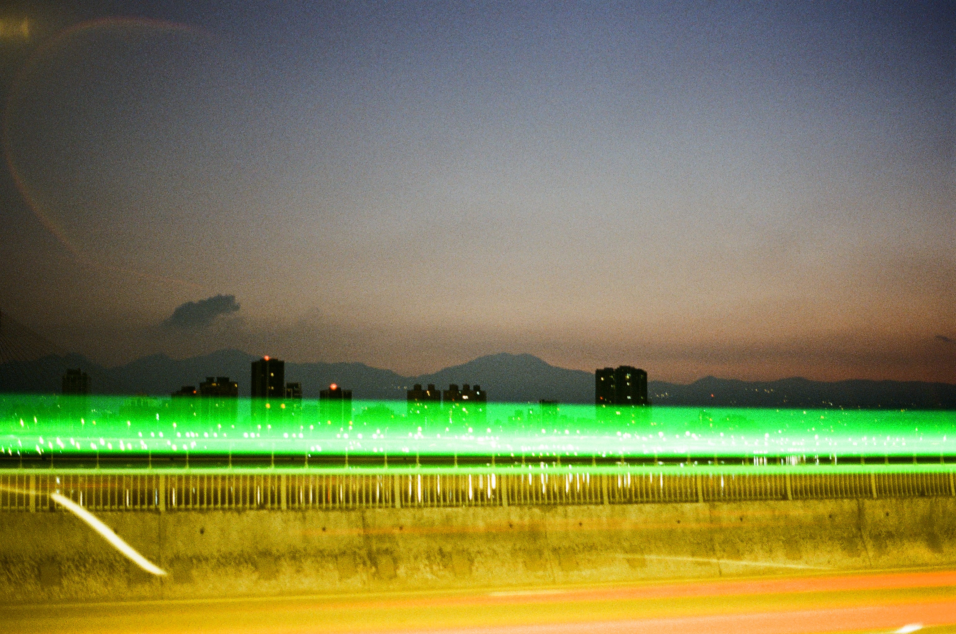因為橋上的自行車道旁有護欄,順便試了一下車軌曝光。