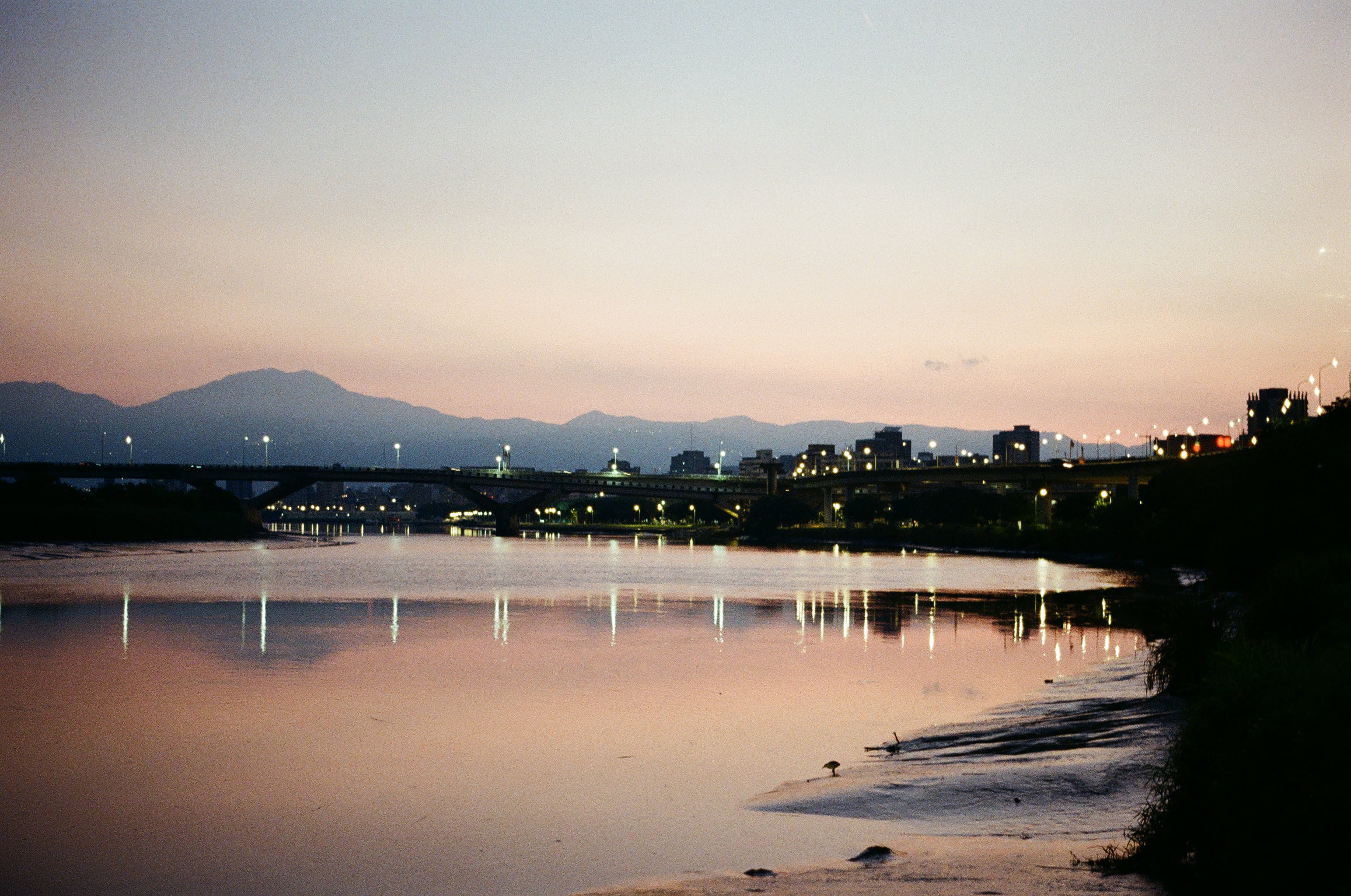 沿途經過的河岸,當時看測光發現要用 1/8s 來拍,在沒有護欄可用的情況下,發現靠著腳踏車椅墊,把車子當作「單腳架」也是可行的。
