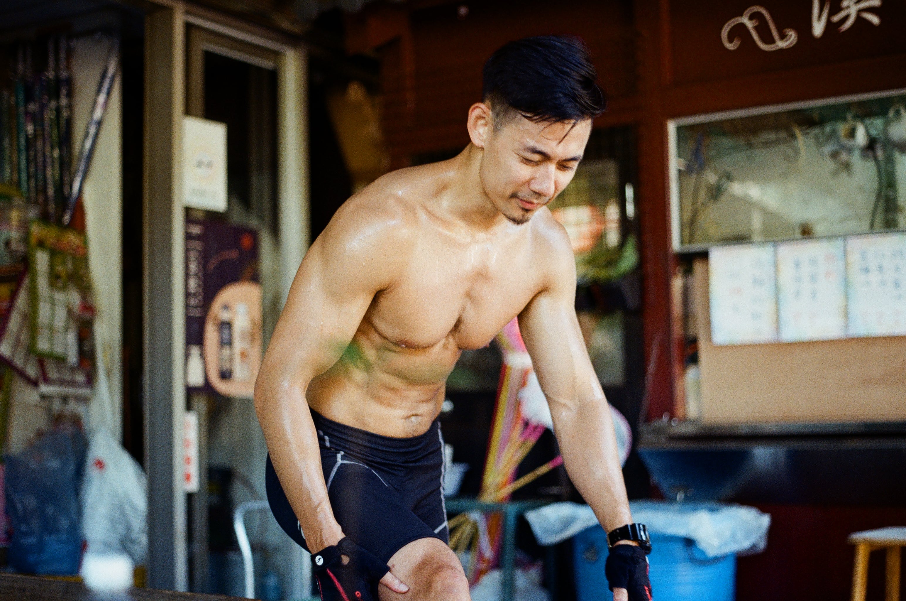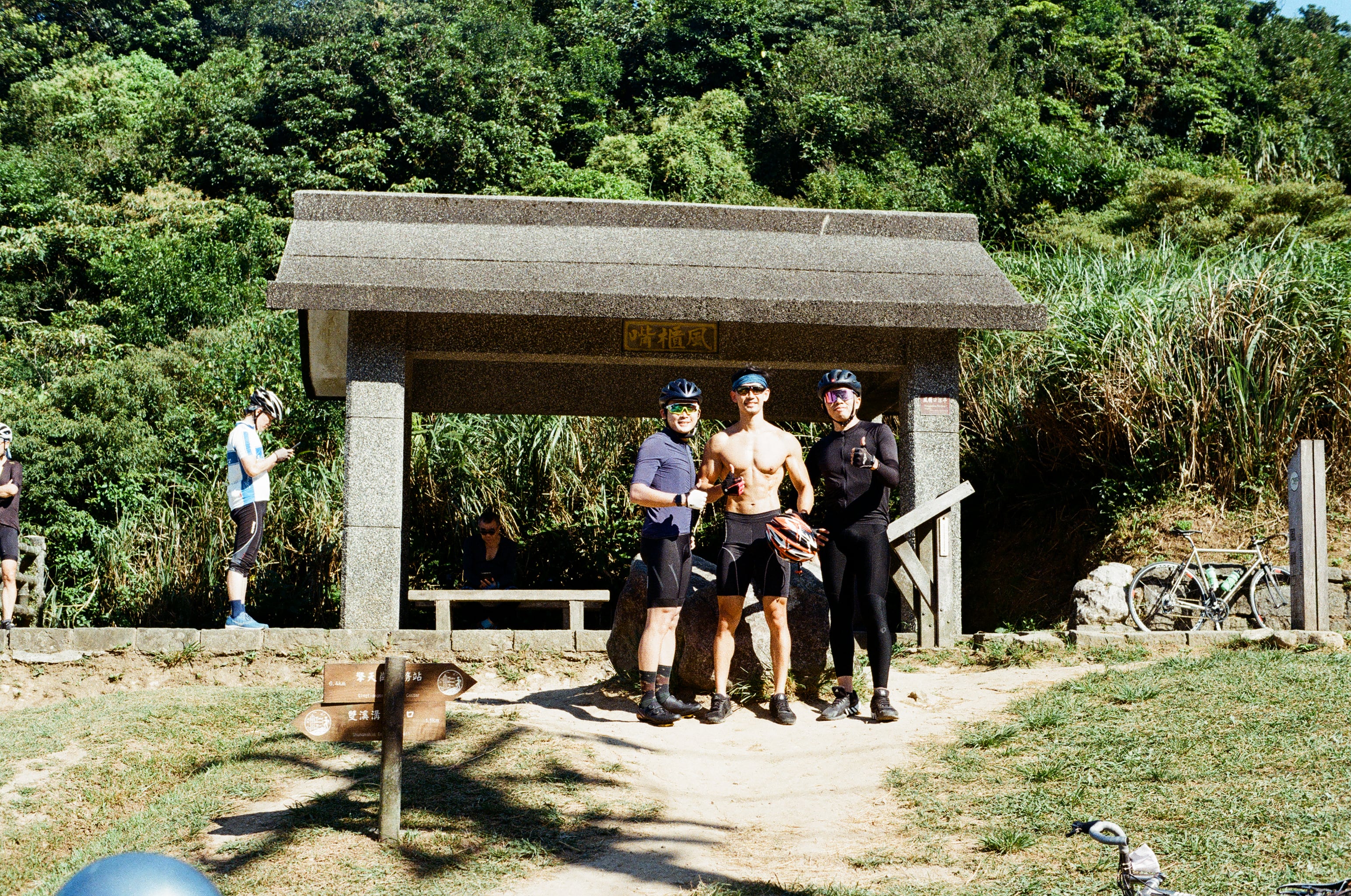 堅持穿肉色車衣騎腳踏車的同行友人。今天對 Olympus 50mm f1.8 這顆鏡頭改觀,因為全開光圈就是可用光圈的關係,在不會忘記縮光圈的情況之下我覺得還滿方便的,以散景效果來說,其實 f1.8 也夠,有時候光圈太大,例如 f1.4 或 f1.2,Olympus 的機身快門速度也跟不上,因為絕大多數 Olympus 底片機的機身快門速度只到 1/1000s 而已。