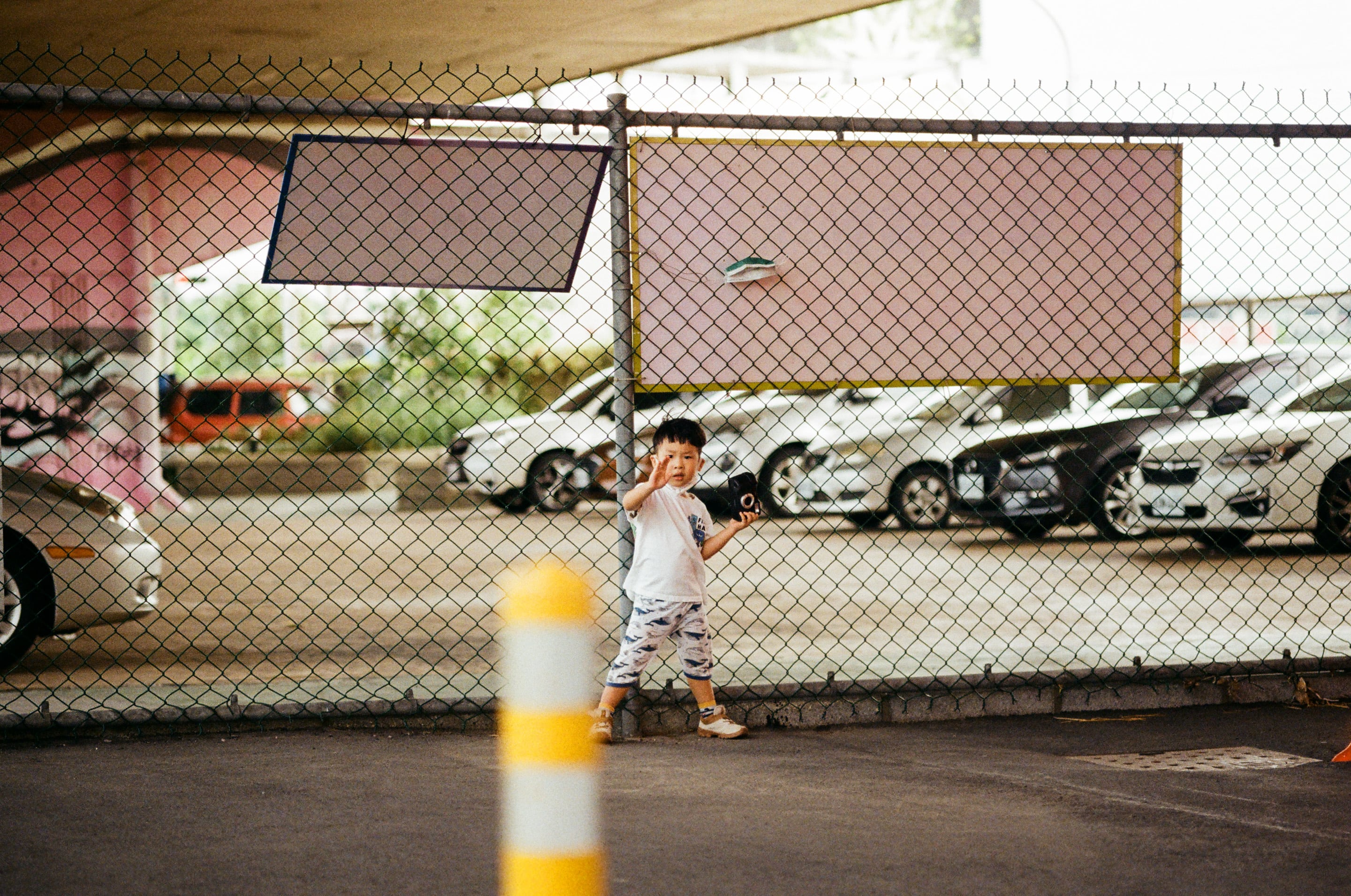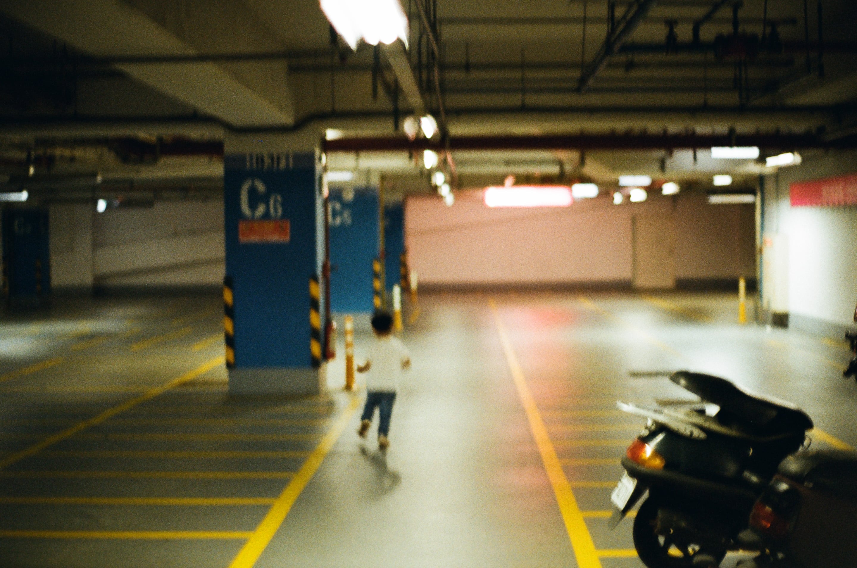 有次兒子下課,帶他去中和環球購物中心逛逛,他興奮地在停車場跑了起來。Olympus 55mm f1.2(1/30,f1.2)