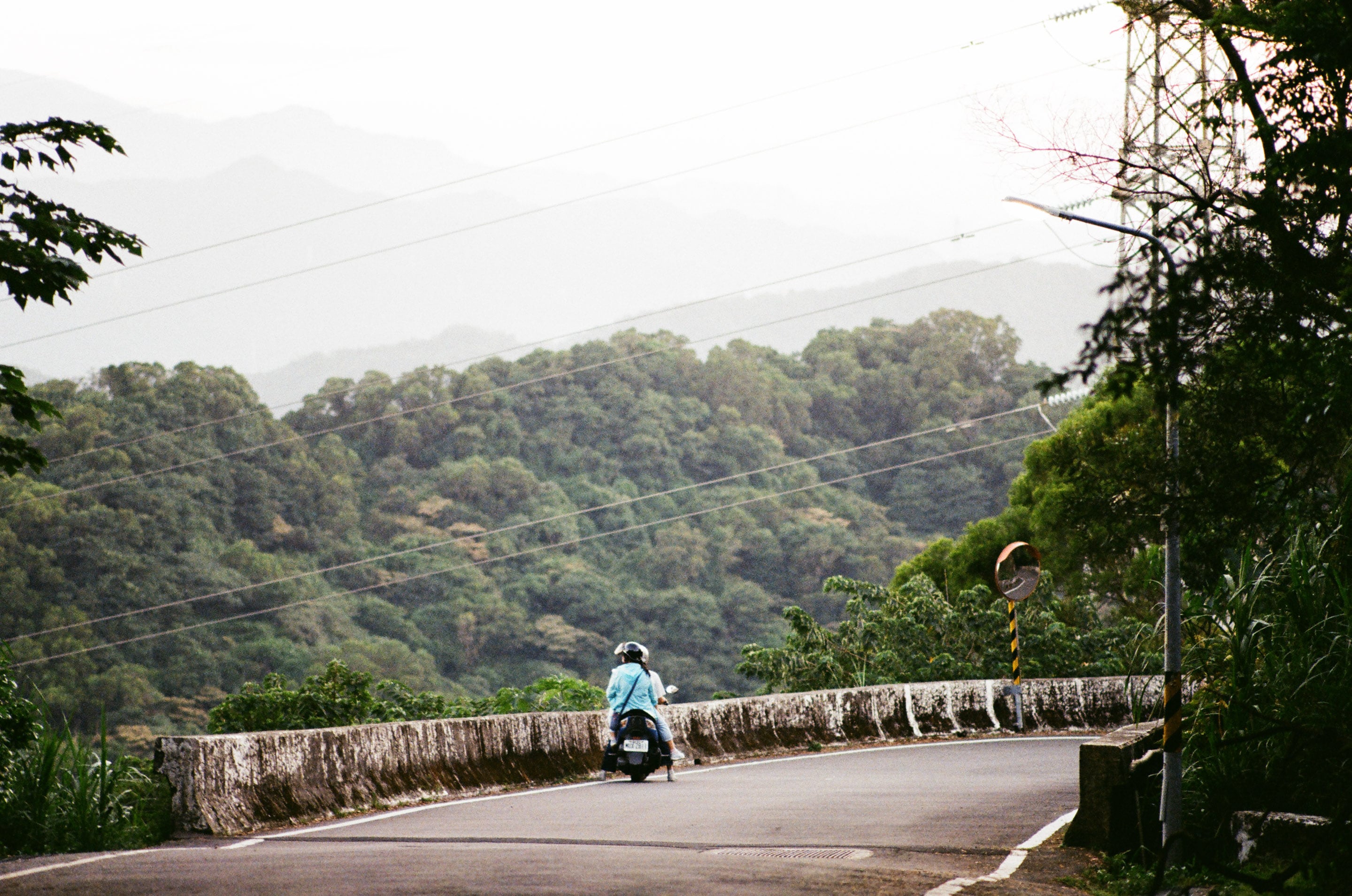 從大榕樹路線回程路上,遇到一對雙載騎車上山看風景的老夫老妻。Olympus 135mm f2.8(1/60,f2.8)