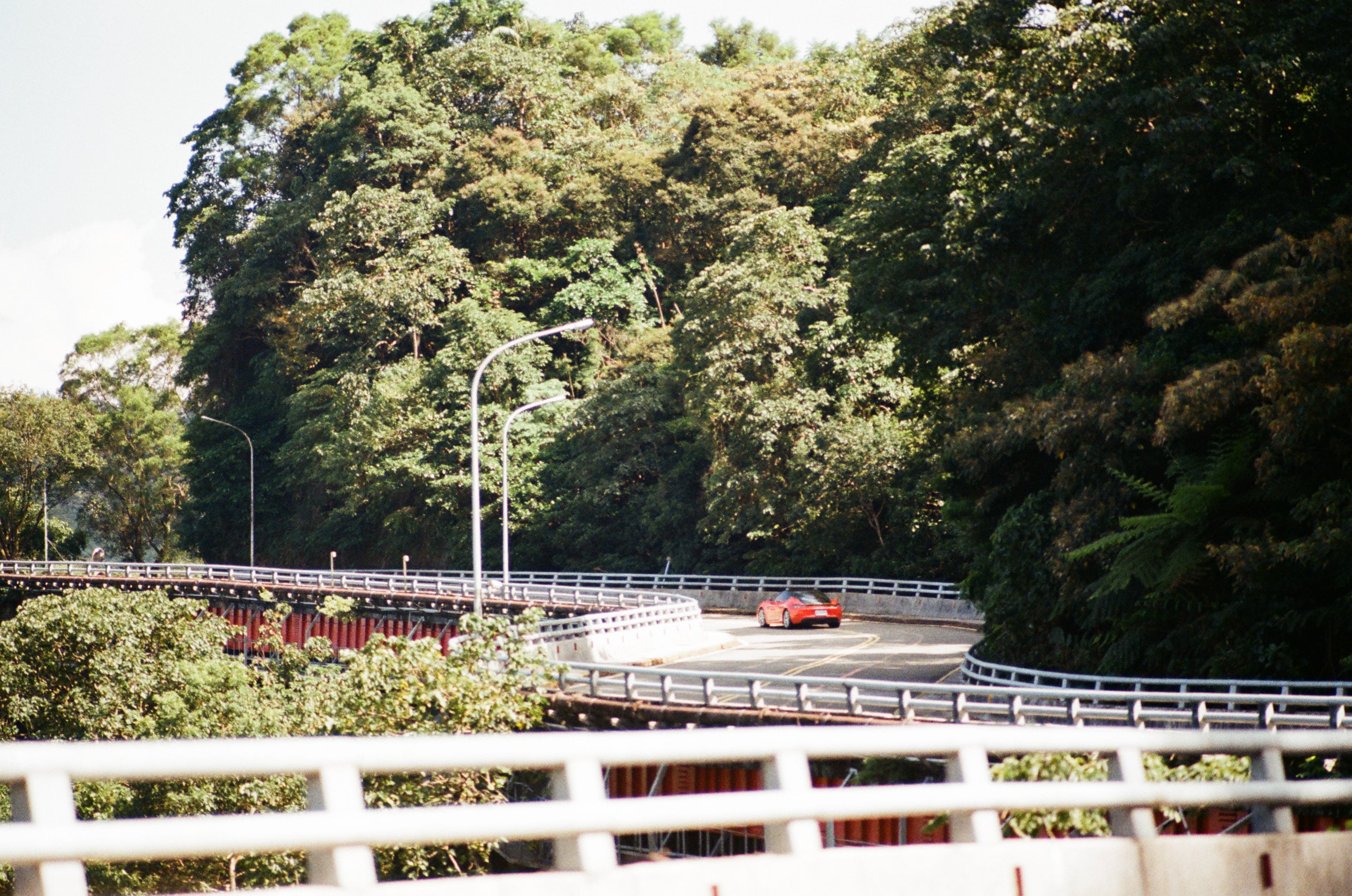 跑在秀岡橋上的跑車。這卷底片給我最大的心得,就是以後風景最佳光圈應是 f8,不要管什麼畫質減損,景深控制更加重要。Olympus 135mm f2.8(1/1000,f2.8)