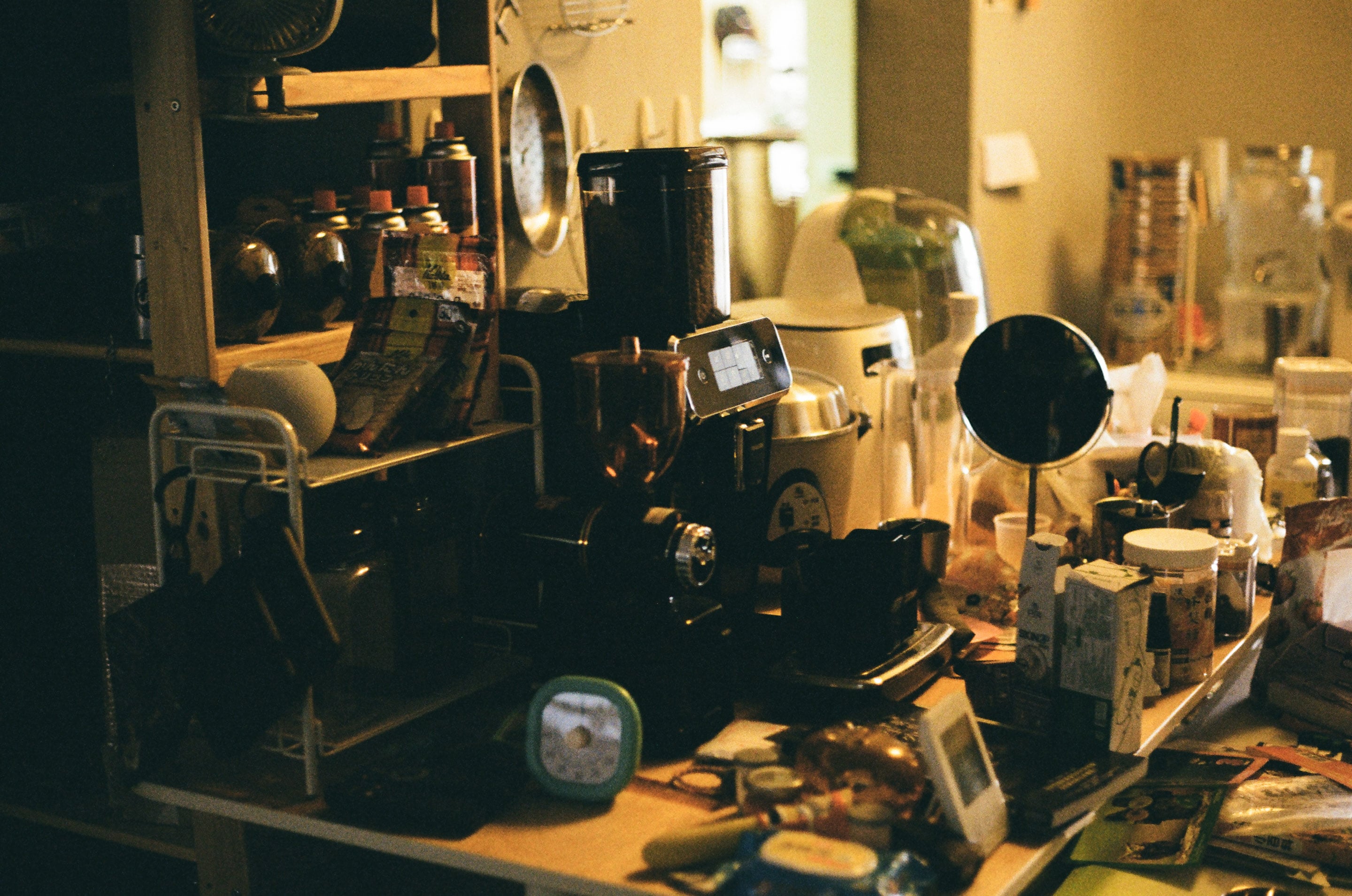平常沒整理的家中一隅,各種雜物在咖啡桌上增生中。Olympus 50mm f1.8(1/30,f1.8)