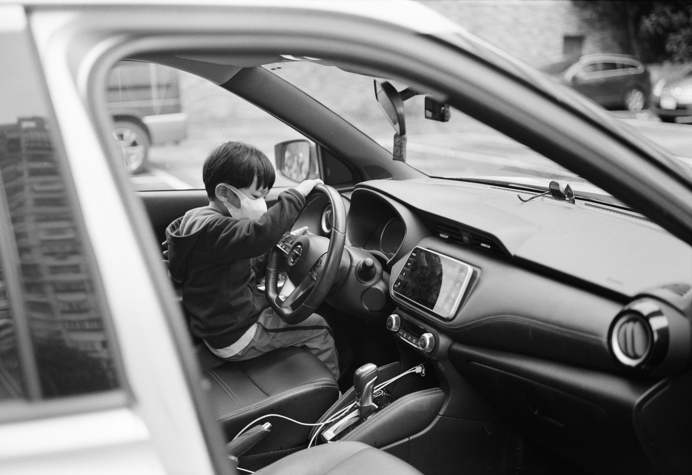三歲小孩的賞車時間。Fujica GW690 90mm f3.5(1/125,f3.5,+0.5 EV)