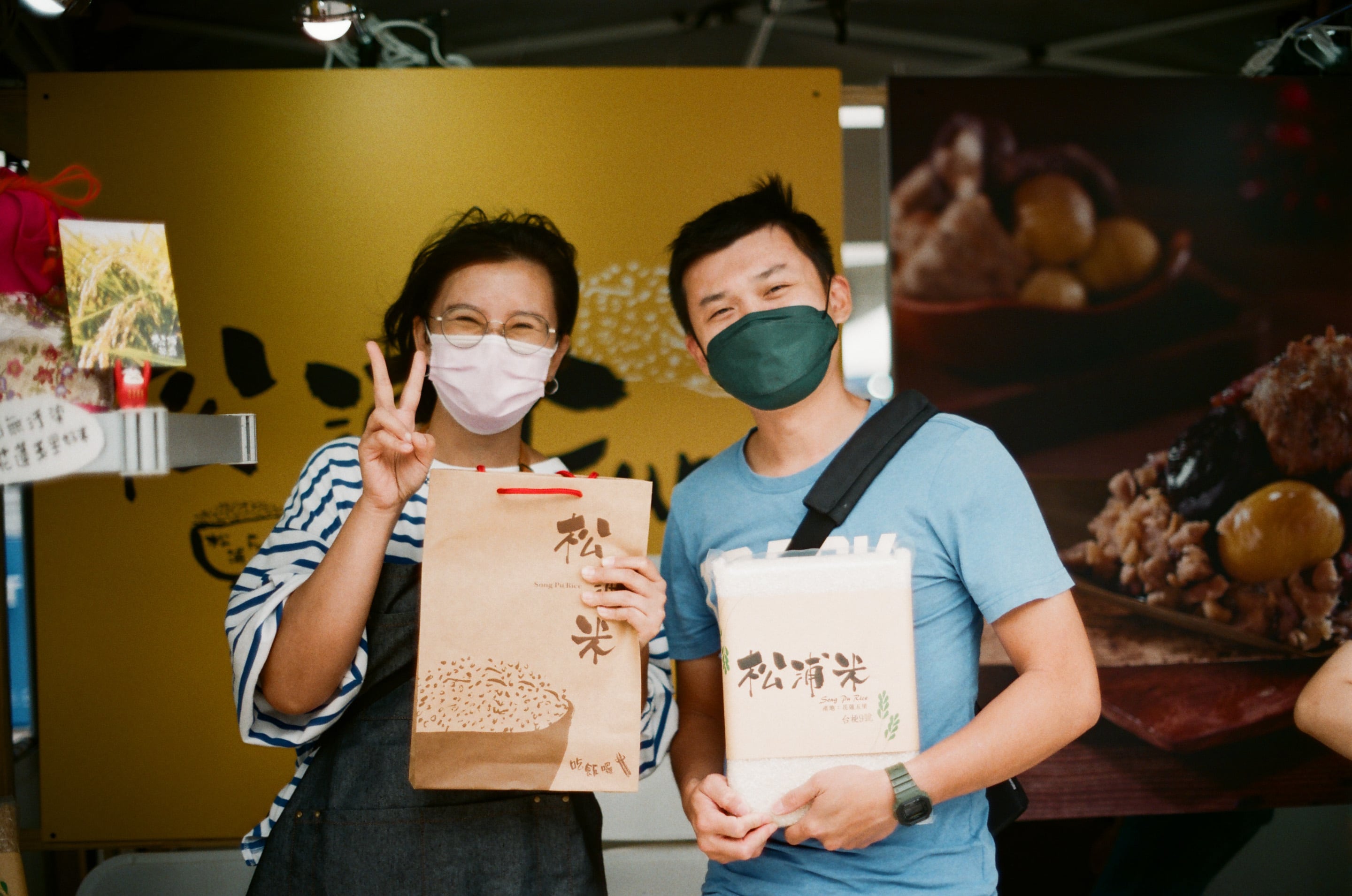今天抽空去探望一位從花蓮上來的朋友,他們家目前經營位於花蓮玉里松浦的米廠,圖為他們在松菸擺攤的照片。Olympus OM 50mm f1.4(1/1000,f2)