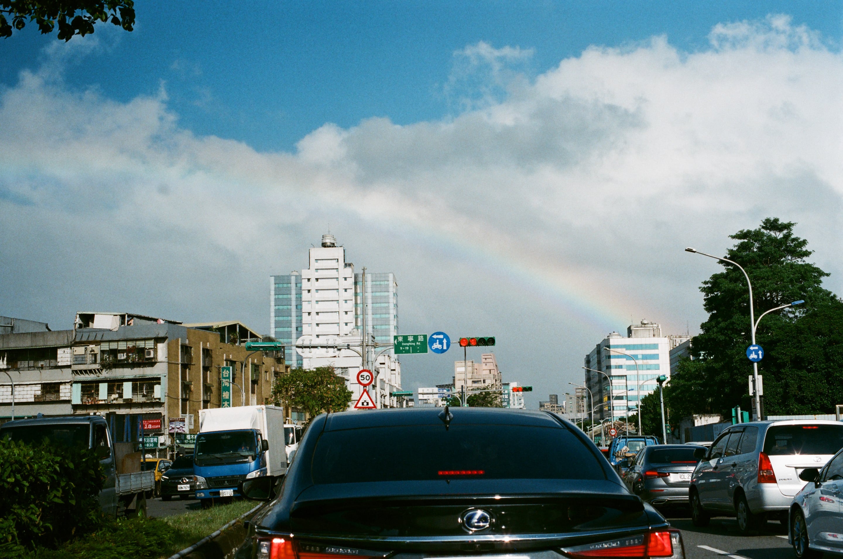 路上碰到彩虹,好險這卷裝的是彩色負片,我上一次遇見彩虹,當時相機裝著黑白底片,所以只能用肉眼欣賞。Olympus OM 50mm f1.4(1/1000,f16)