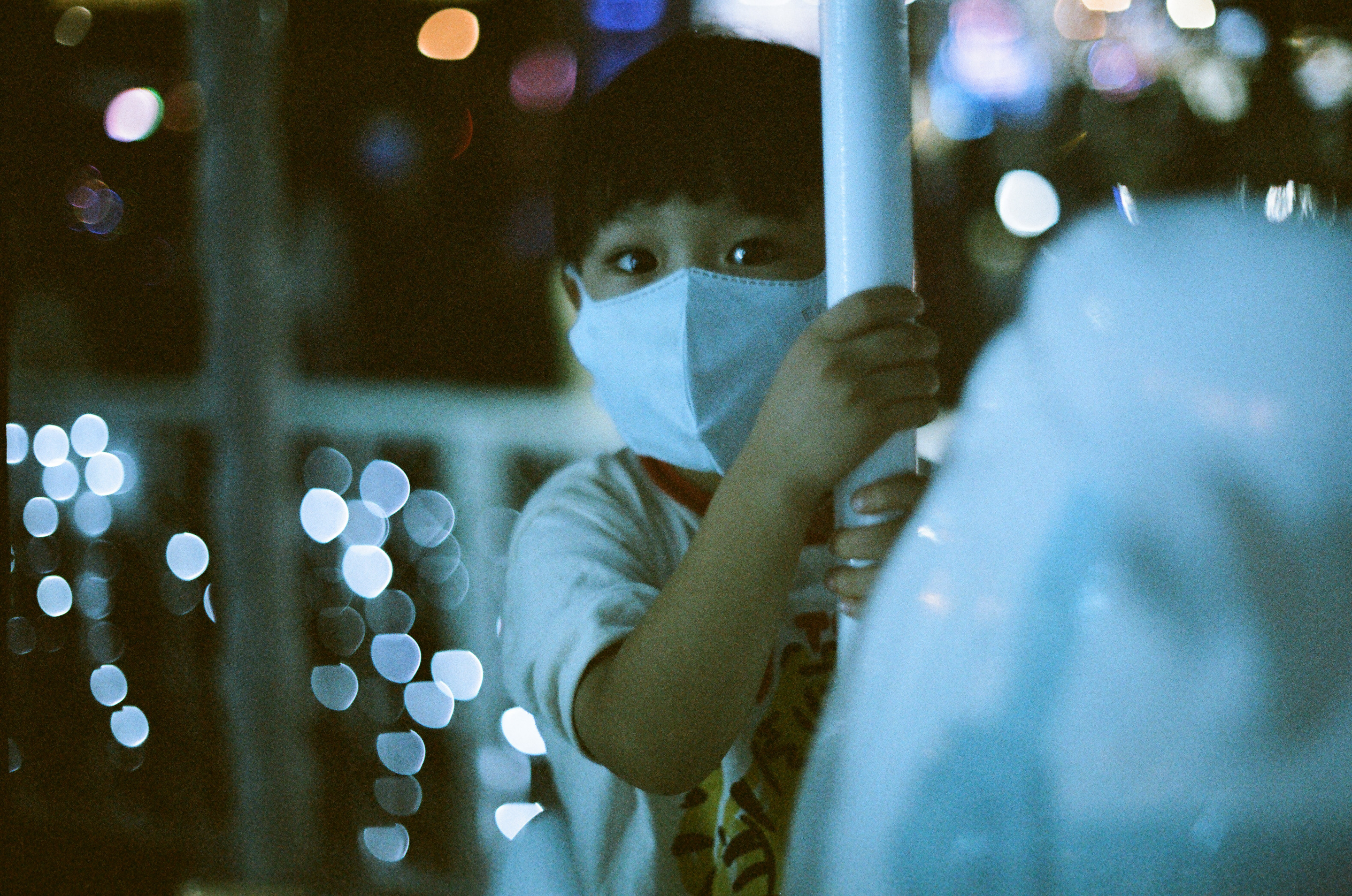 陪兒子一起搭旋轉木馬的成年人視角。Olympus OM 50mm f1.4(1/60,f1.4)