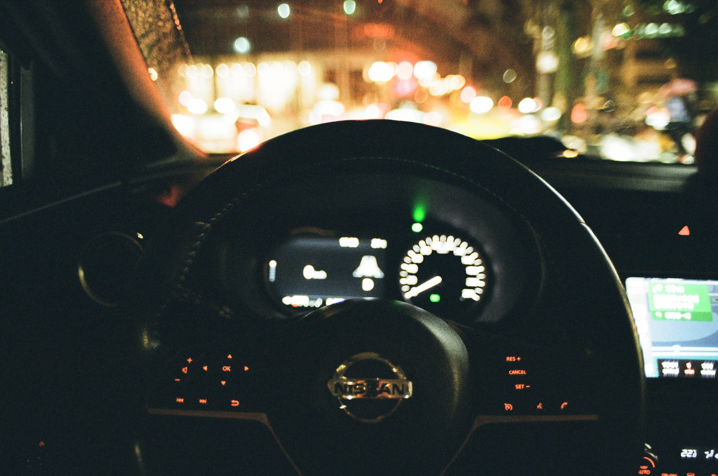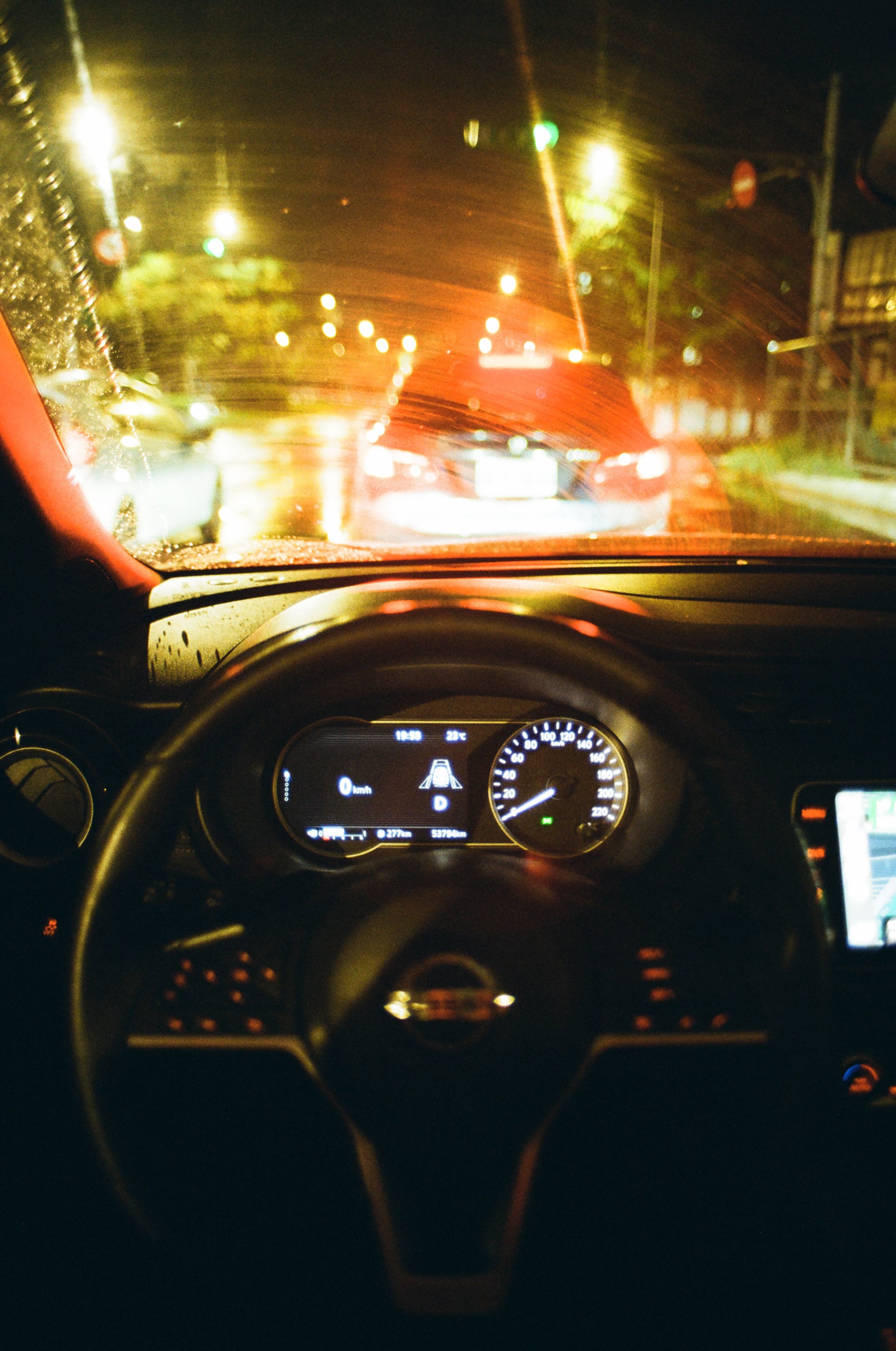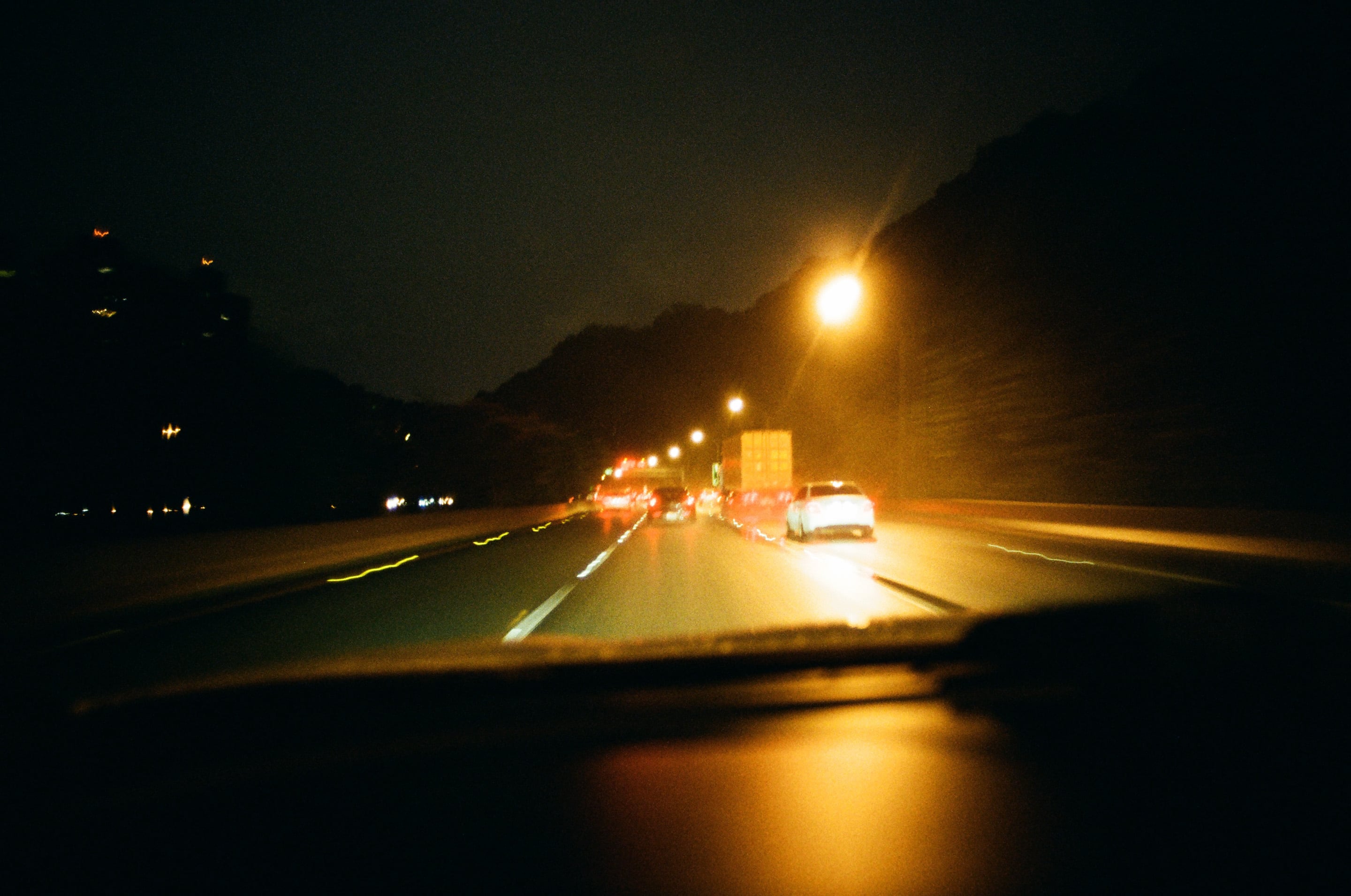 在用了 24mm 的鏡頭之後,發現拿來拍車內第一人稱視角很好用,如果是 Olympus OM 24mm f2 的話,可以在燈光昏暗內的隧道爭取最多的進光量。Olympus OM 24mm f2(1/4,f2)