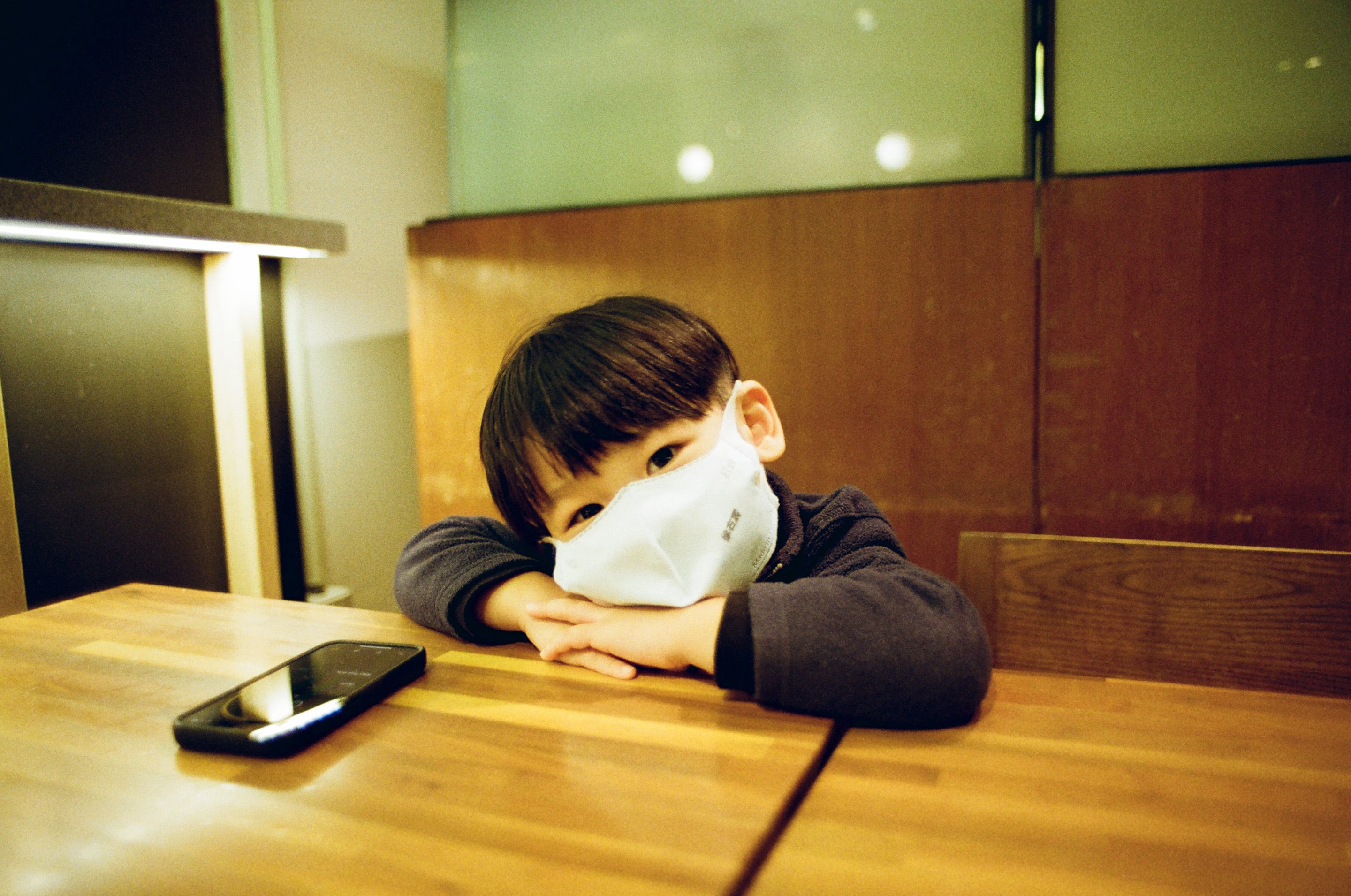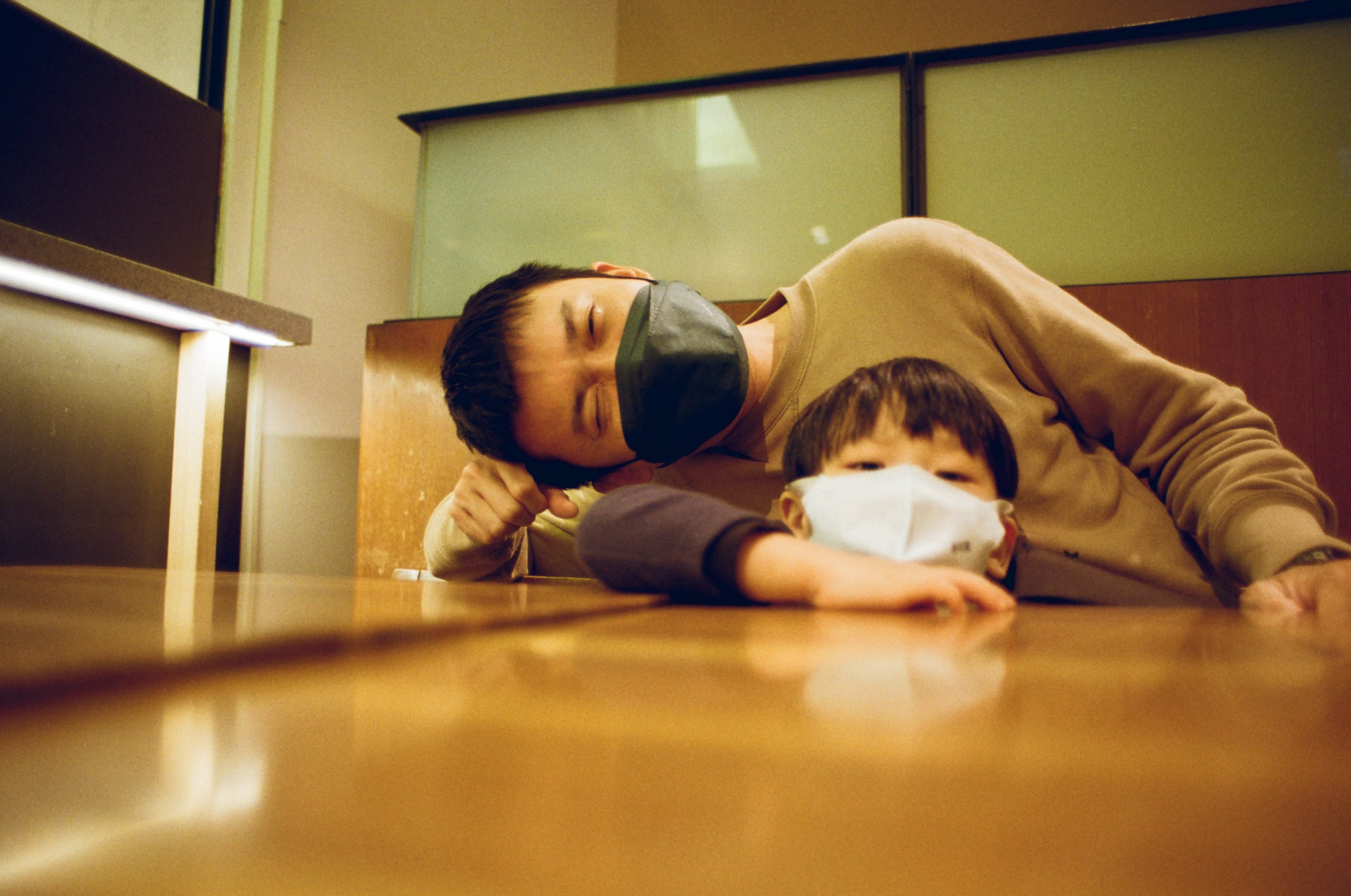在信義誠品美食街的等待過程,兒子說要用倒數自拍一下。Olympus OM 24mm f2(1/15,f2)