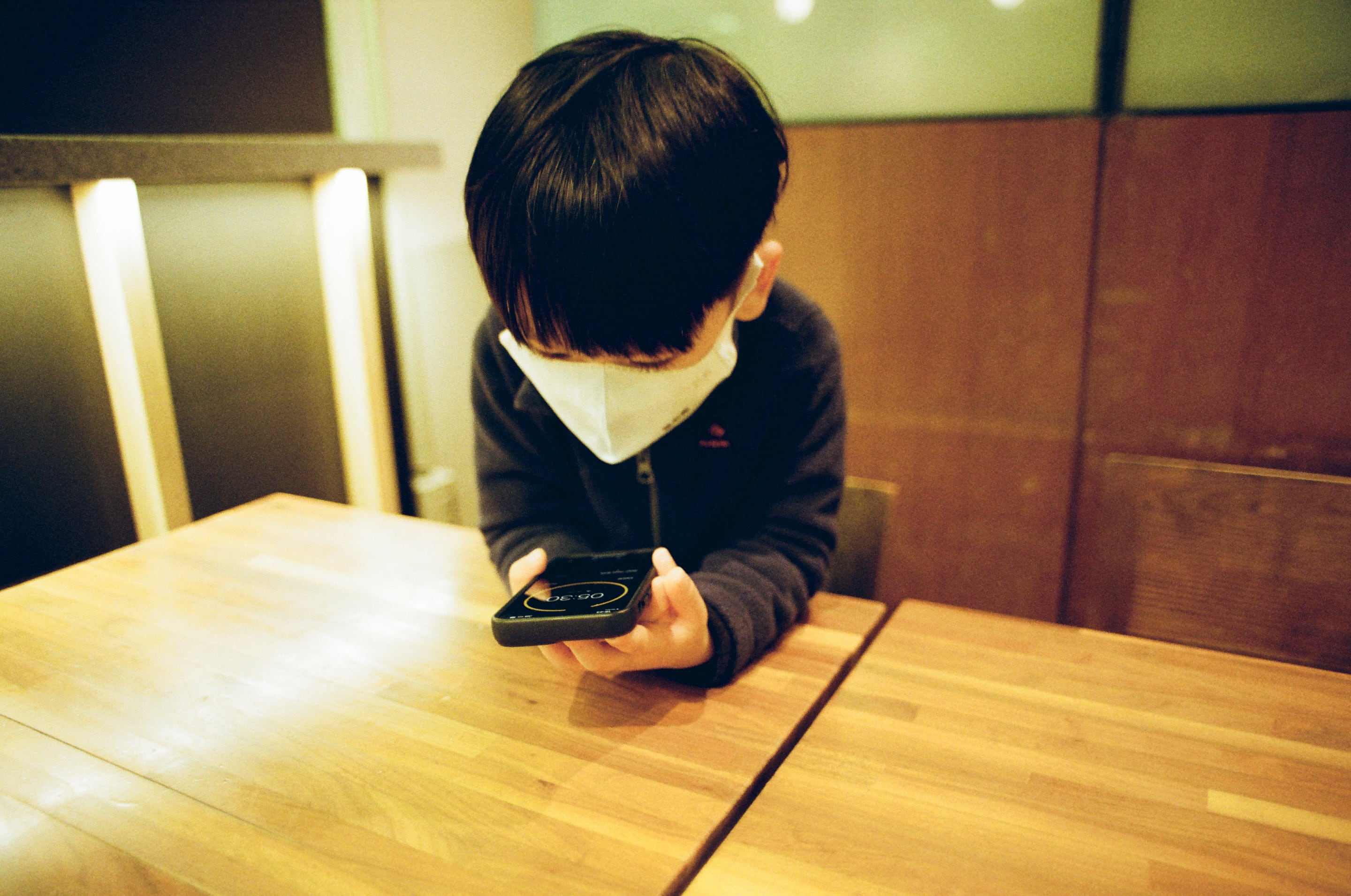 兒子正在等媽媽下班過來跟我們會合,我開了手機用倒數計時給兒子看,我覺得 iOS 倒數計時功能的視覺化介面不錯,即使小朋友還看不太懂時間,也可以透過視覺化的圓條提示,大概知道時間流動的速度。Olympus OM 24mm f2(1/15,f2)