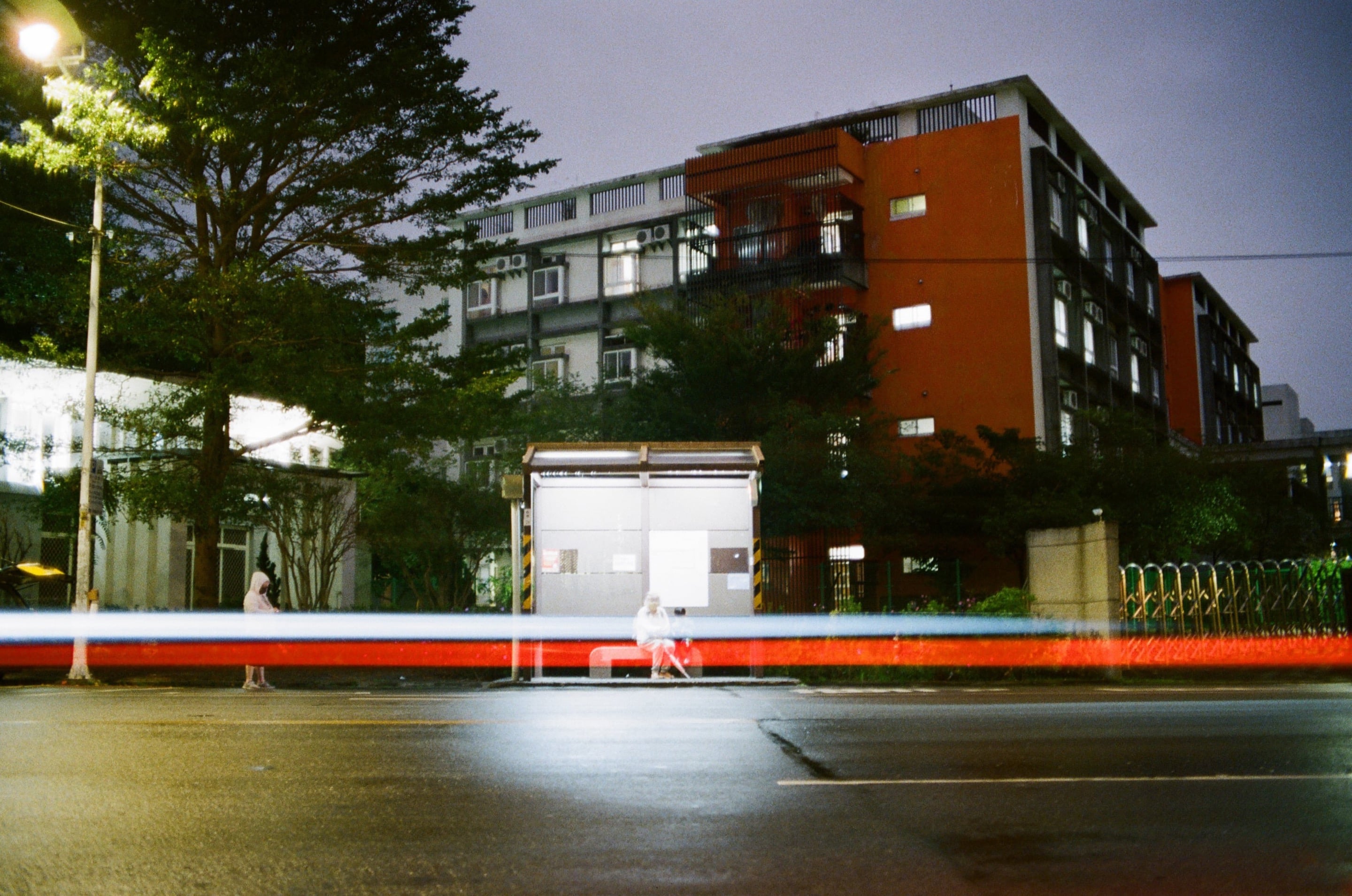 這卷底片,最喜歡的一張照片。這車軌是全手持拍攝的,透過蹲著,手肘靠在膝上以增加穩定度。Olympus OM 35mm f2(1/2,f2)