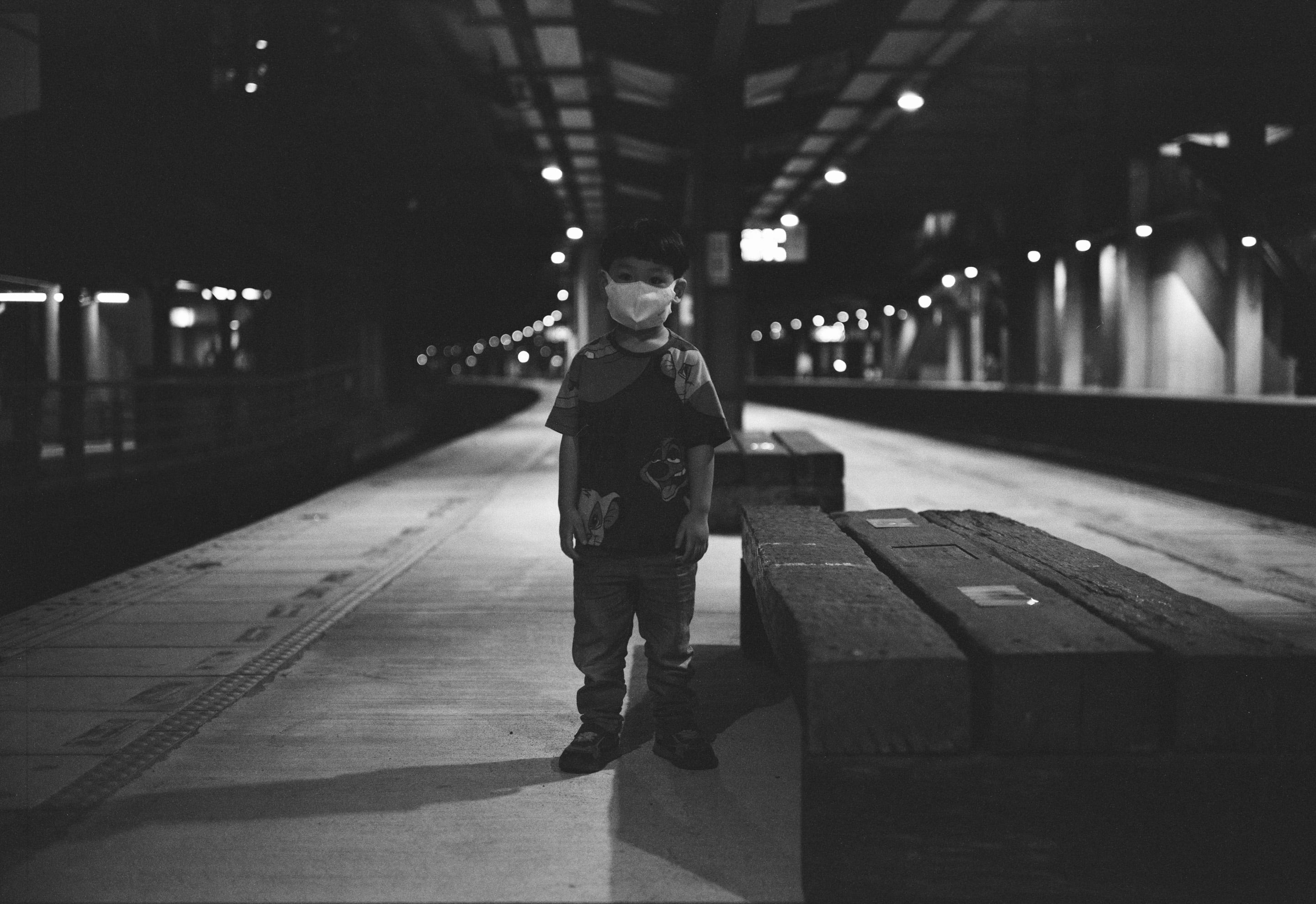 帶兒子從南樹林火車站坐到山佳火車站下車,我不知道為什麼兒子在拍照時突然切換成這種一臉放空的表情,也許是累了吧?大人會累,小孩也會累,只好互相體諒了。話說 GW690 系列因為是旁軸相機,採用鏡間快門的設計,拍攝時沒有反光鏡的震動,因此安全快門可以開到 1/30 也是穩穩的。Fuji GW690II + Fujinon EBC 90mm f3.5(1/30,f3.5)