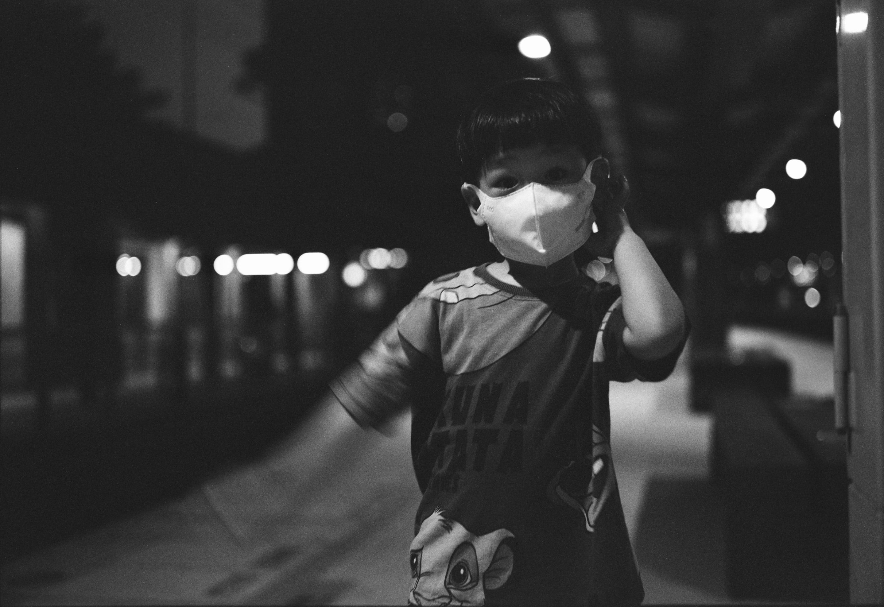 兒子走了過來,我來不及追焦,但應該還是合到了一點焦。雖然 GW690 系列的安全快門是 1/30,但 1/30 就是一個被攝者也不能動的快門速度,否則就會模糊,因此還是得小心使用。Fuji GW690II + Fujinon EBC 90mm f3.5(1/30,f3.5)
