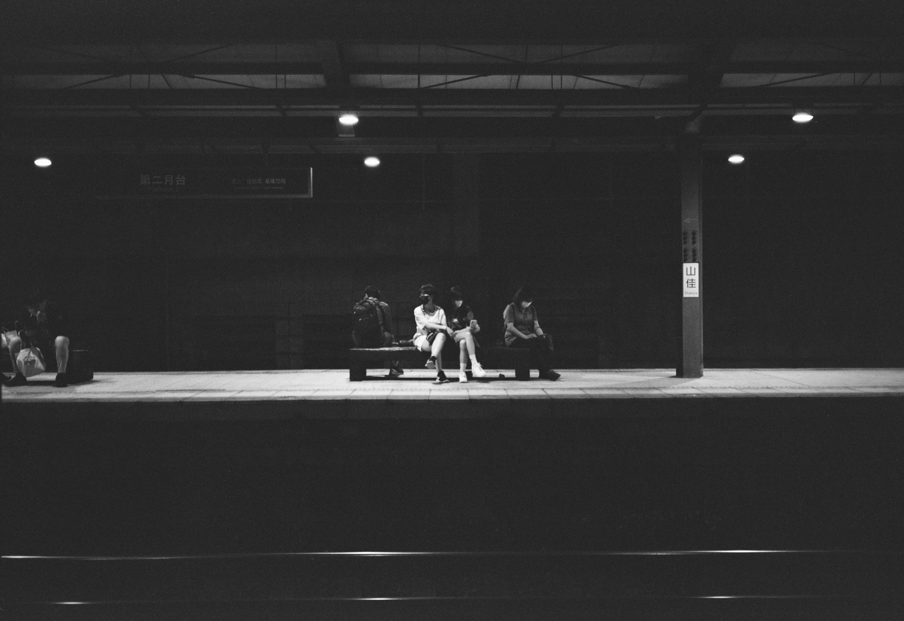 看著月台對面的旅客,其實我發現自己滿喜歡坐火車的,總覺得有種遠離都市的感覺。Fuji GW690II + Fujinon EBC 90mm f3.5(1/30,f3.5)
