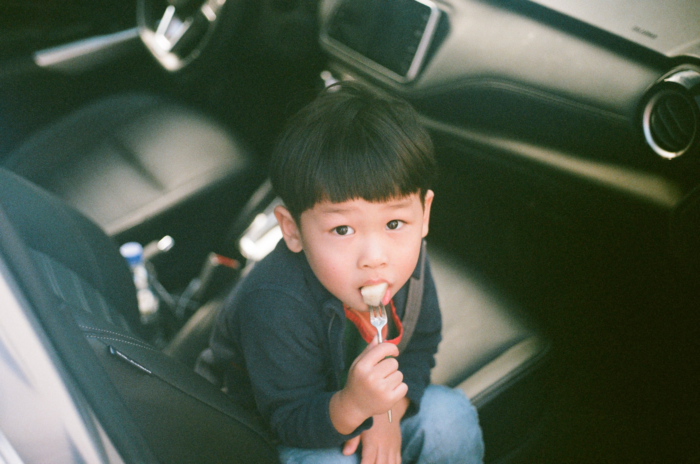 某天,開車送兒子上學,到了停車場,等兒子吃完水果才下車。Canon FD 50mm f1.8(1/1000,f1.8)