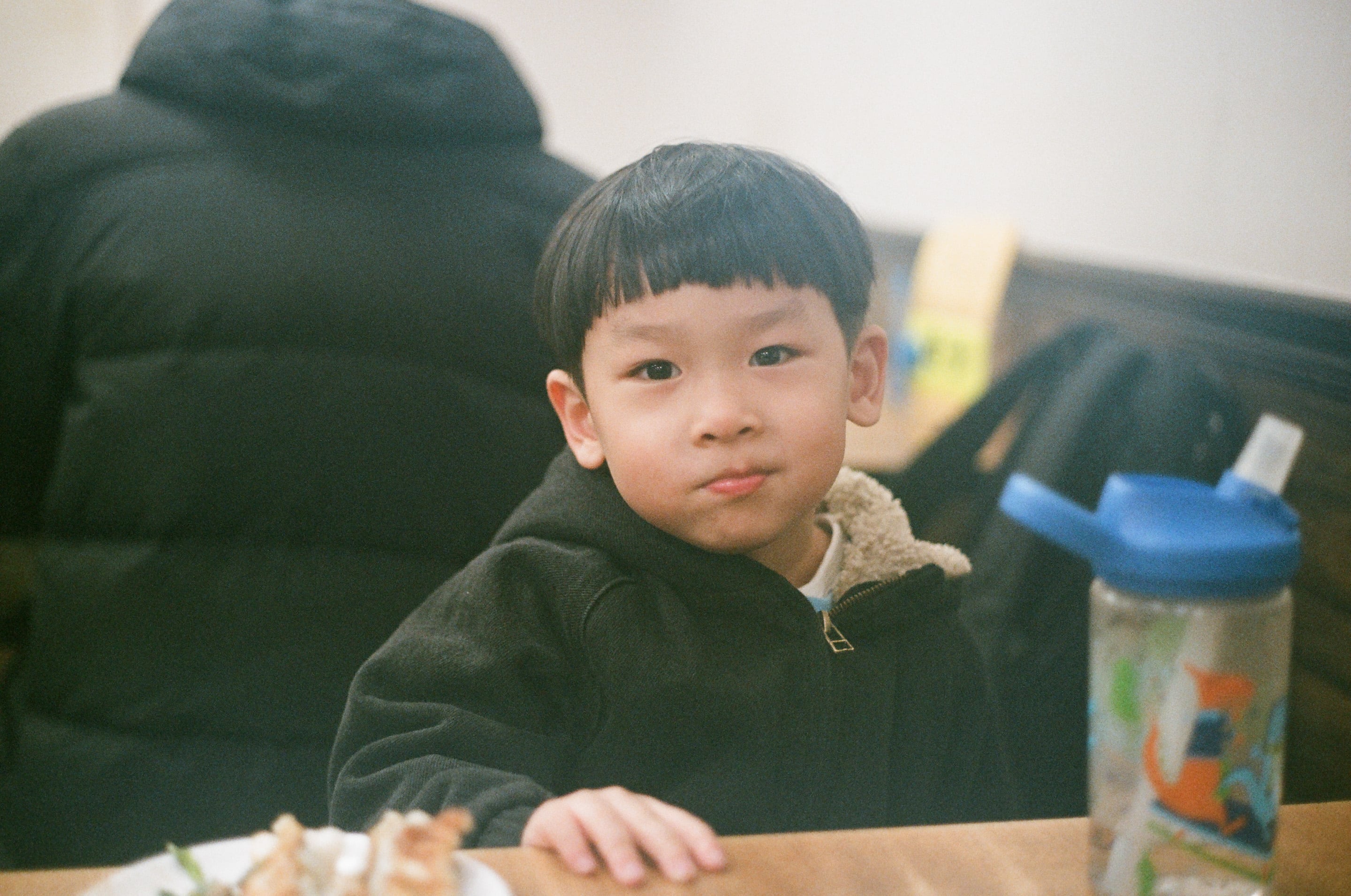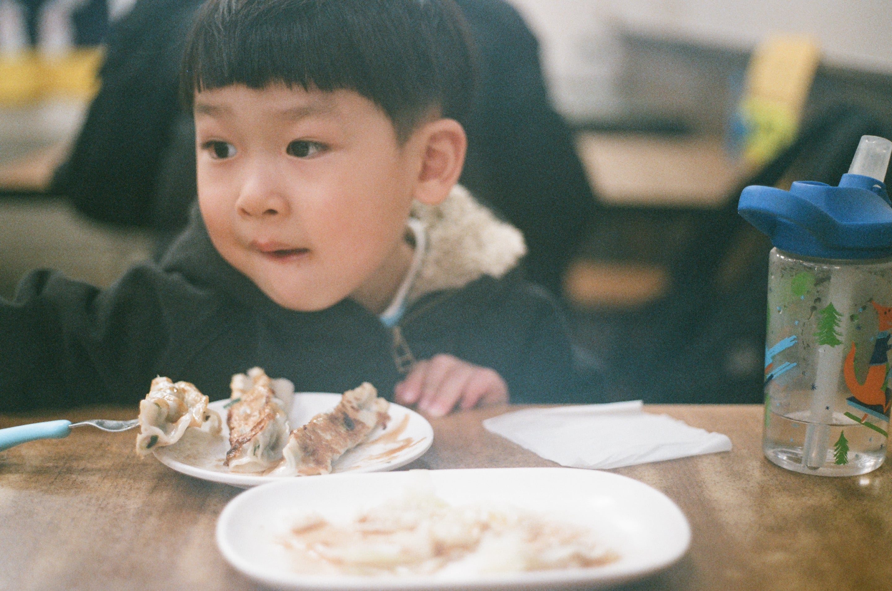 記得這餐老五鍋貼,我和兒子吃了一個小時,小孩子吃東西總是愛吃不吃你知道。Canon FD 50mm f1.8(1/125,f1.8)
