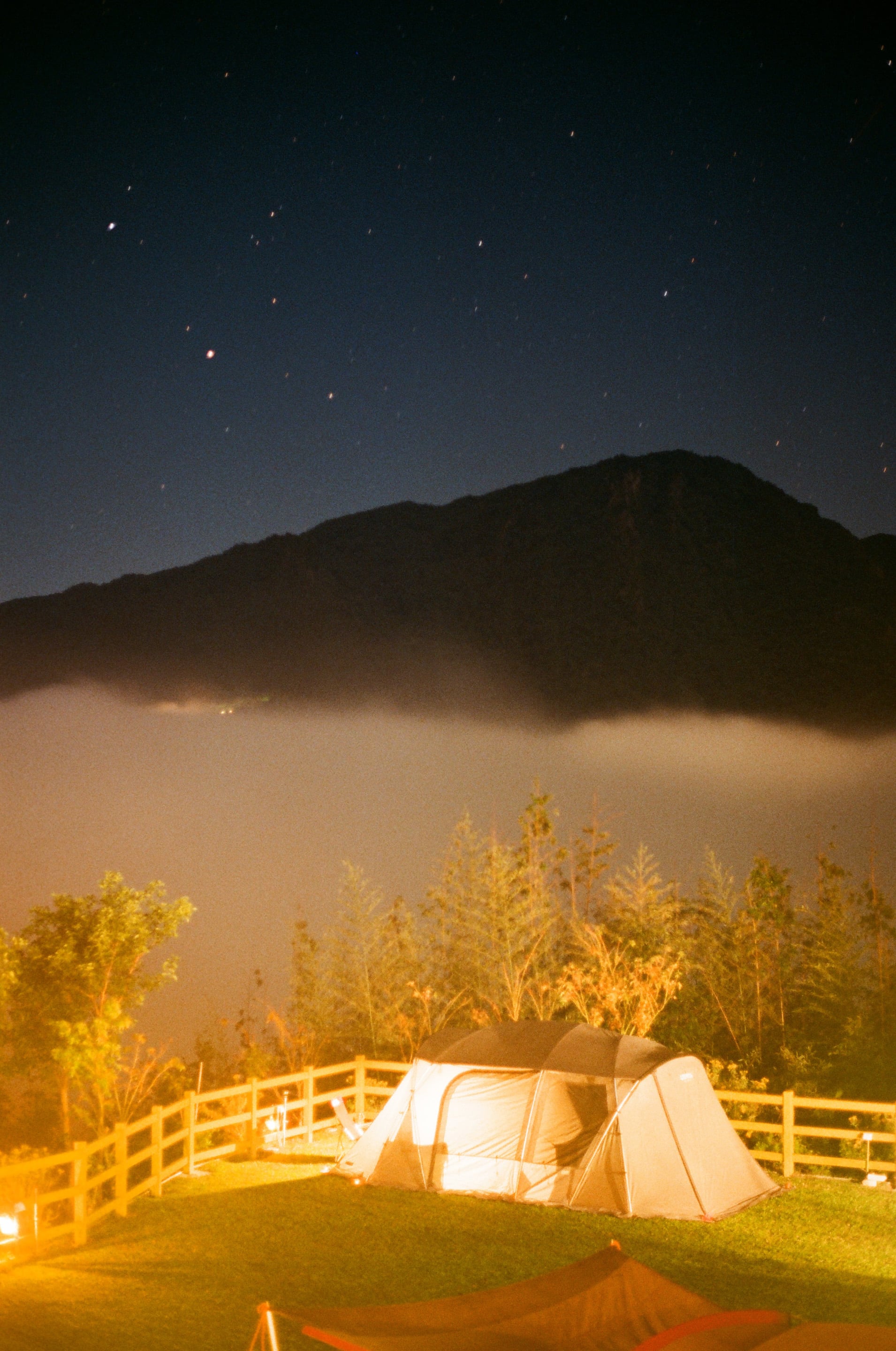 星星與雲海同時出現的平靜景觀,只可惜相機有問題,無法清楚拍下。Canon FD 50mm f1.8(30秒,f1.8)