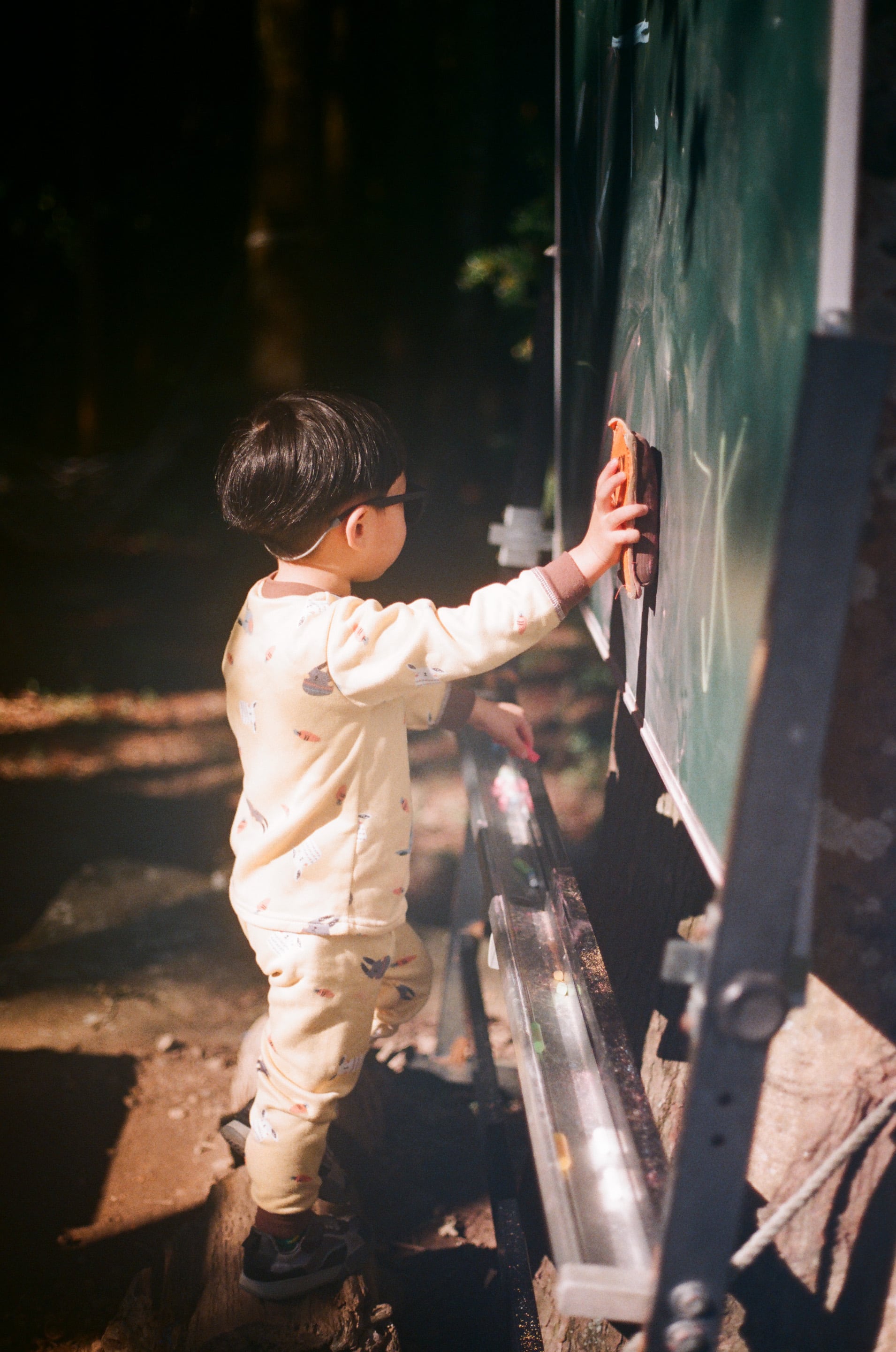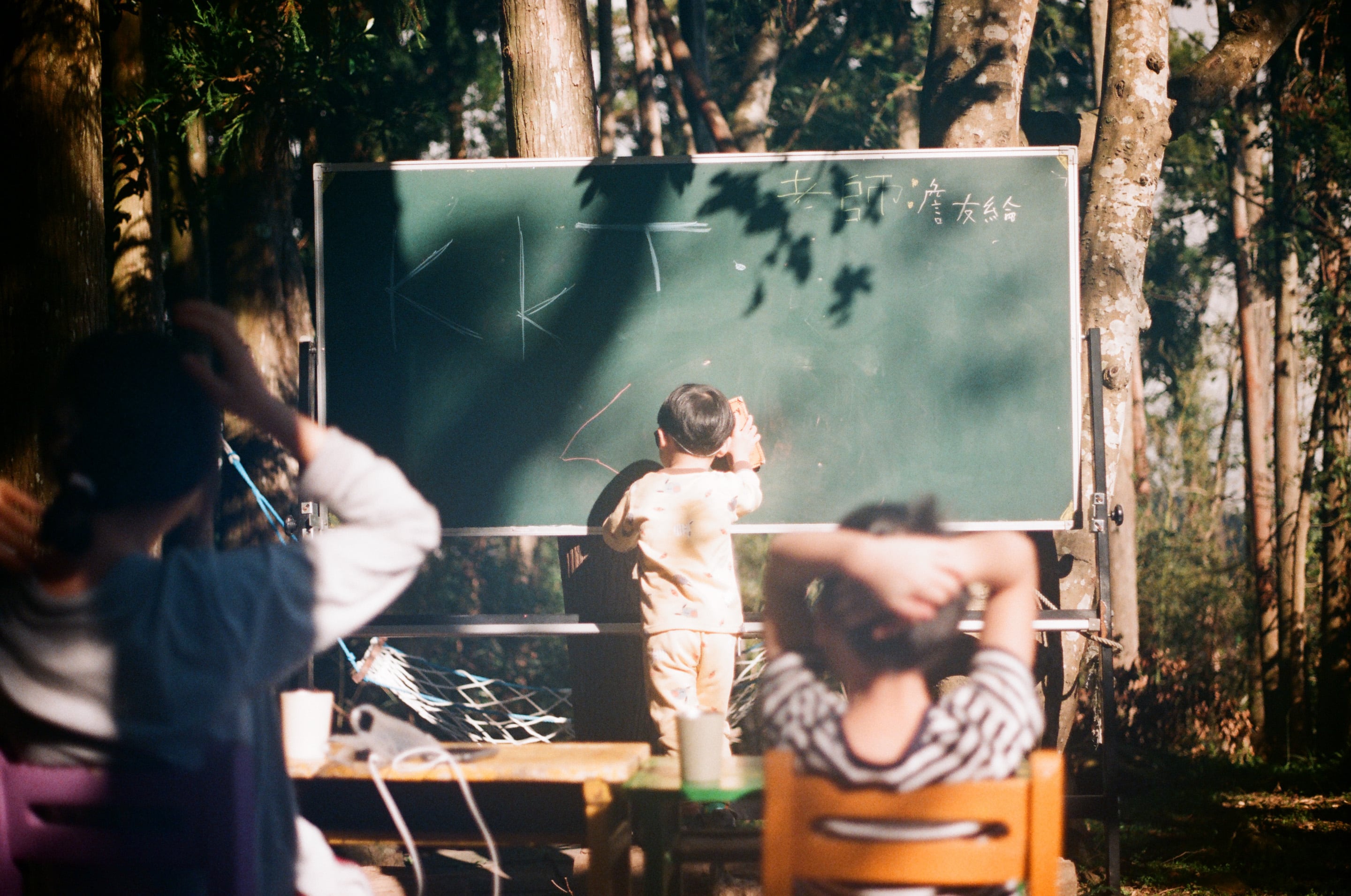 在這次的露營區小熊森林,在營位旁剛好有座小森林,裡頭竟然放了個有趣的黑板,圖為我兒上去充當老師。