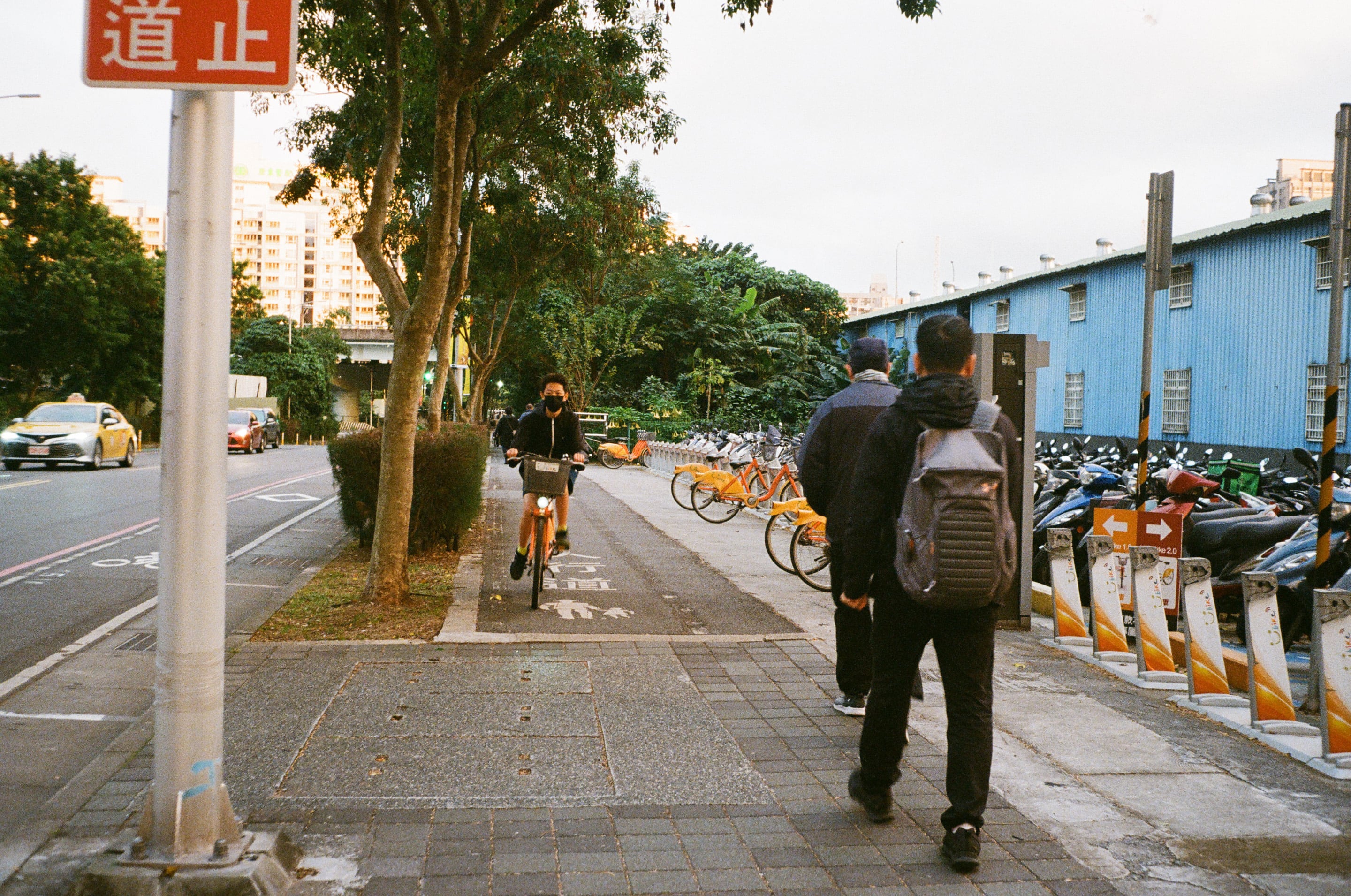 捷運忠孝敦化站附近。由於 Olympus Trip 35 是一台不會告訴你拍攝參數的全自動相機,因此我平常拍攝記錄光圈、快門值的習慣派不上用場,我發現其實這樣是也滿省心的,整個拍攝的節奏變得飛快,比手機還快,因為根本沒有檢視照片這種事。