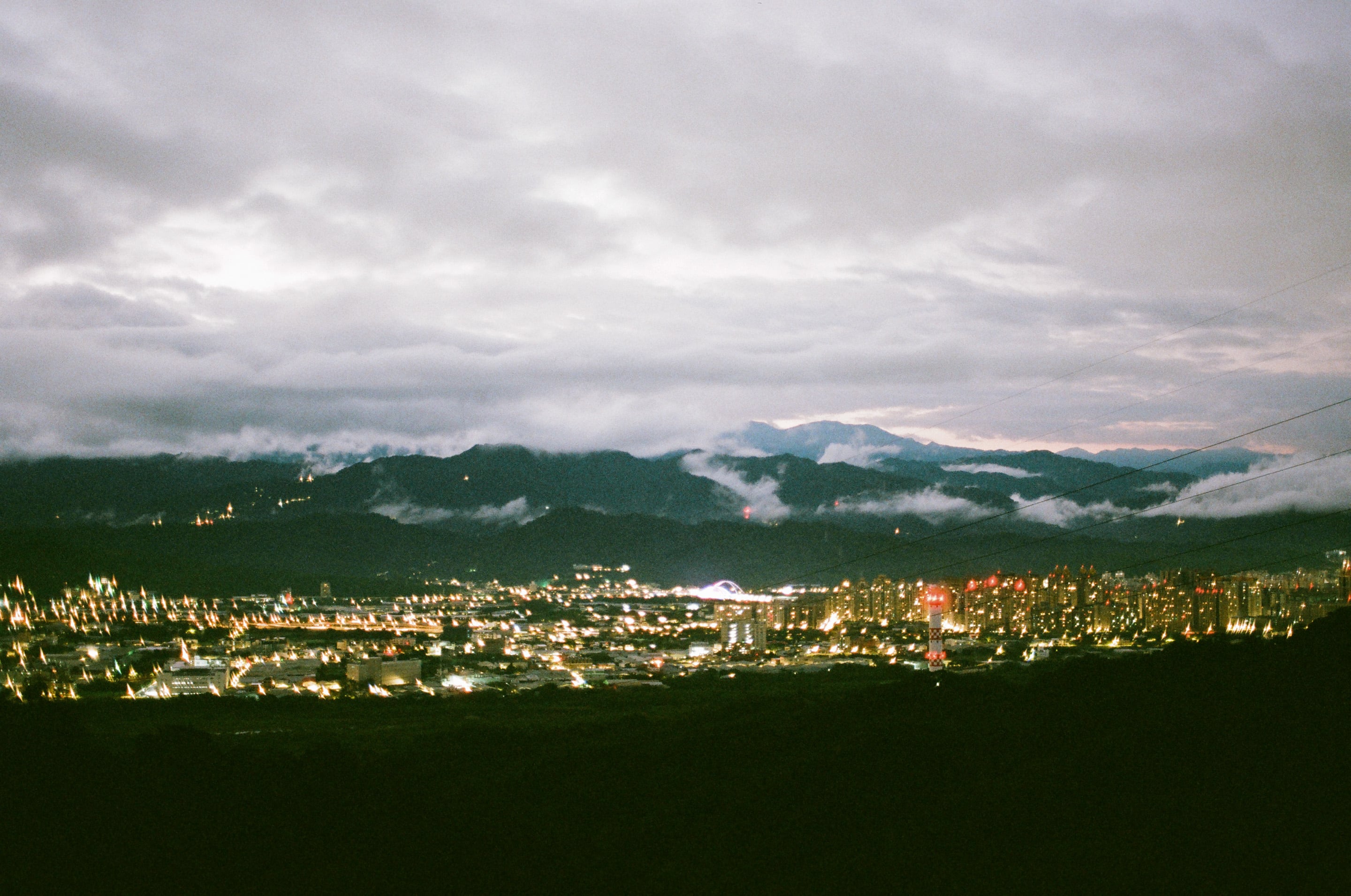 位於新北樹林的石灰坑百年大榕樹觀景平台,海拔約 326 公尺,就可以見到非常遼闊的景緻。Olympus OM 40mm f2(1秒,f8)