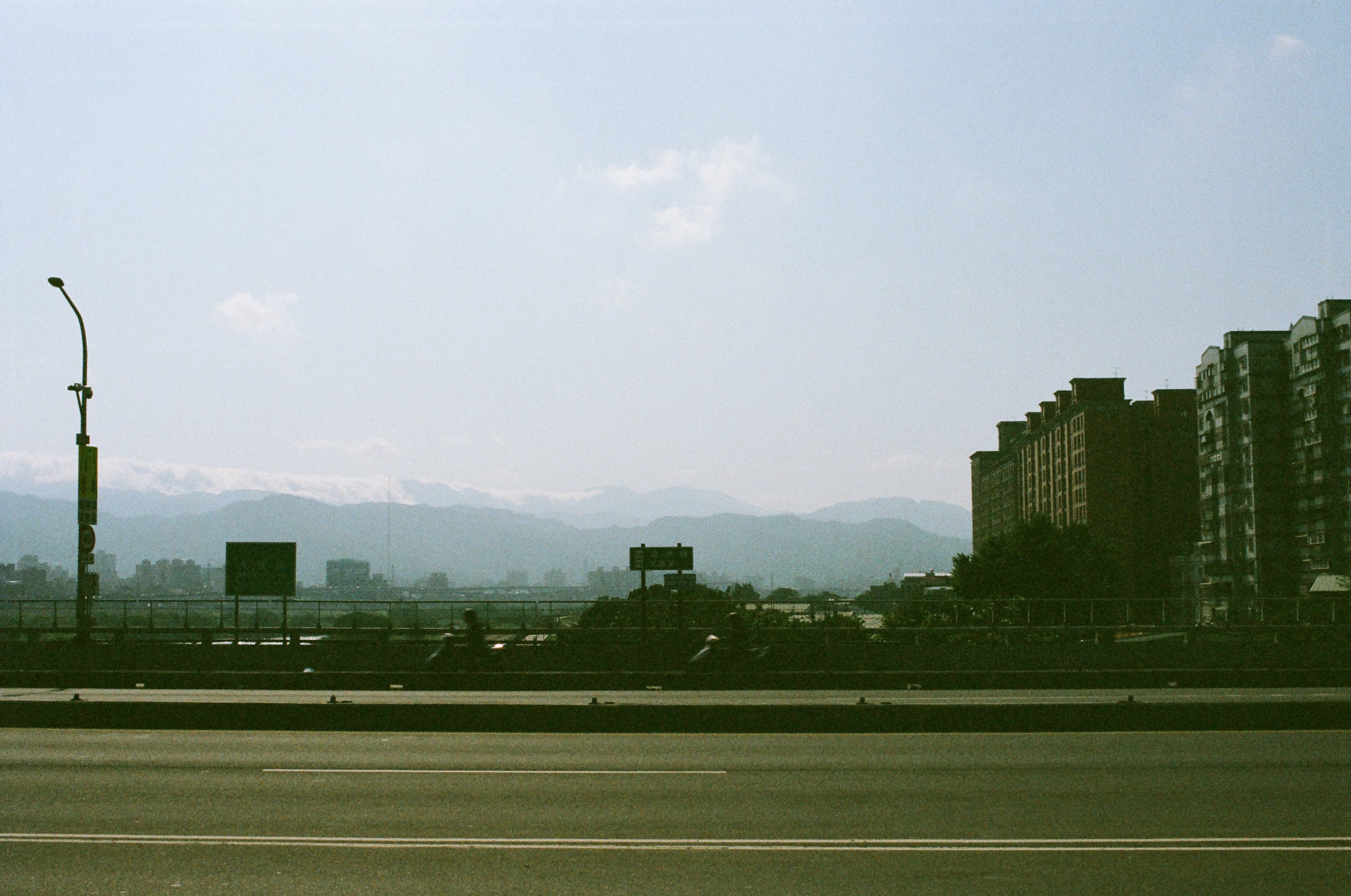 剛上浮洲橋,正想拍個車軌,但我不小心按到了快門。Olympus OM 40mm f2(1/2,f11)