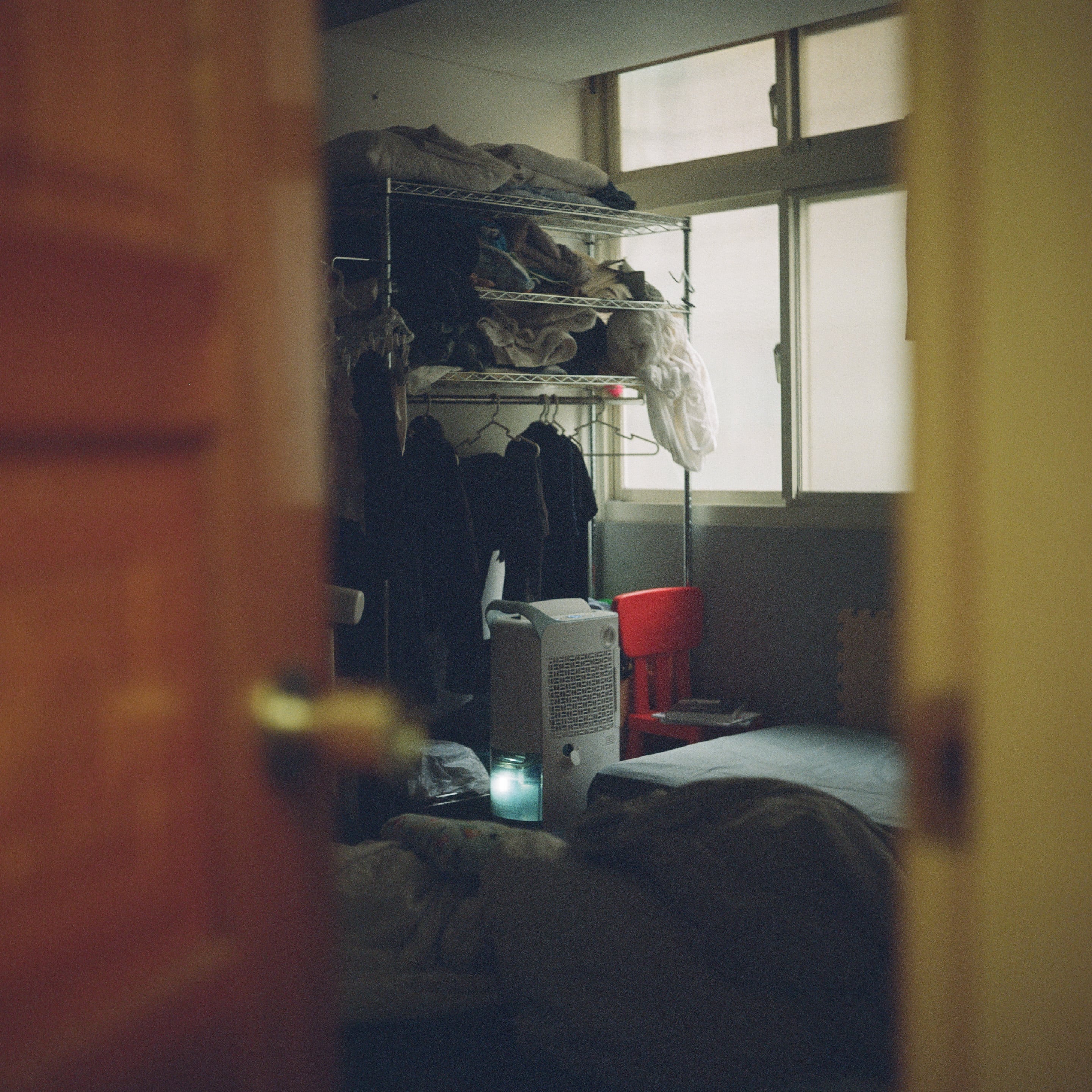 我平時都會固定把前一天曬的衣服拿進去主臥室除濕一整天,再放進衣櫃。沒辦法,台北太潮濕了。但真是多虧了照片中間這台 Costco 賣的 LG 除濕機,我五星推爆啊這台!