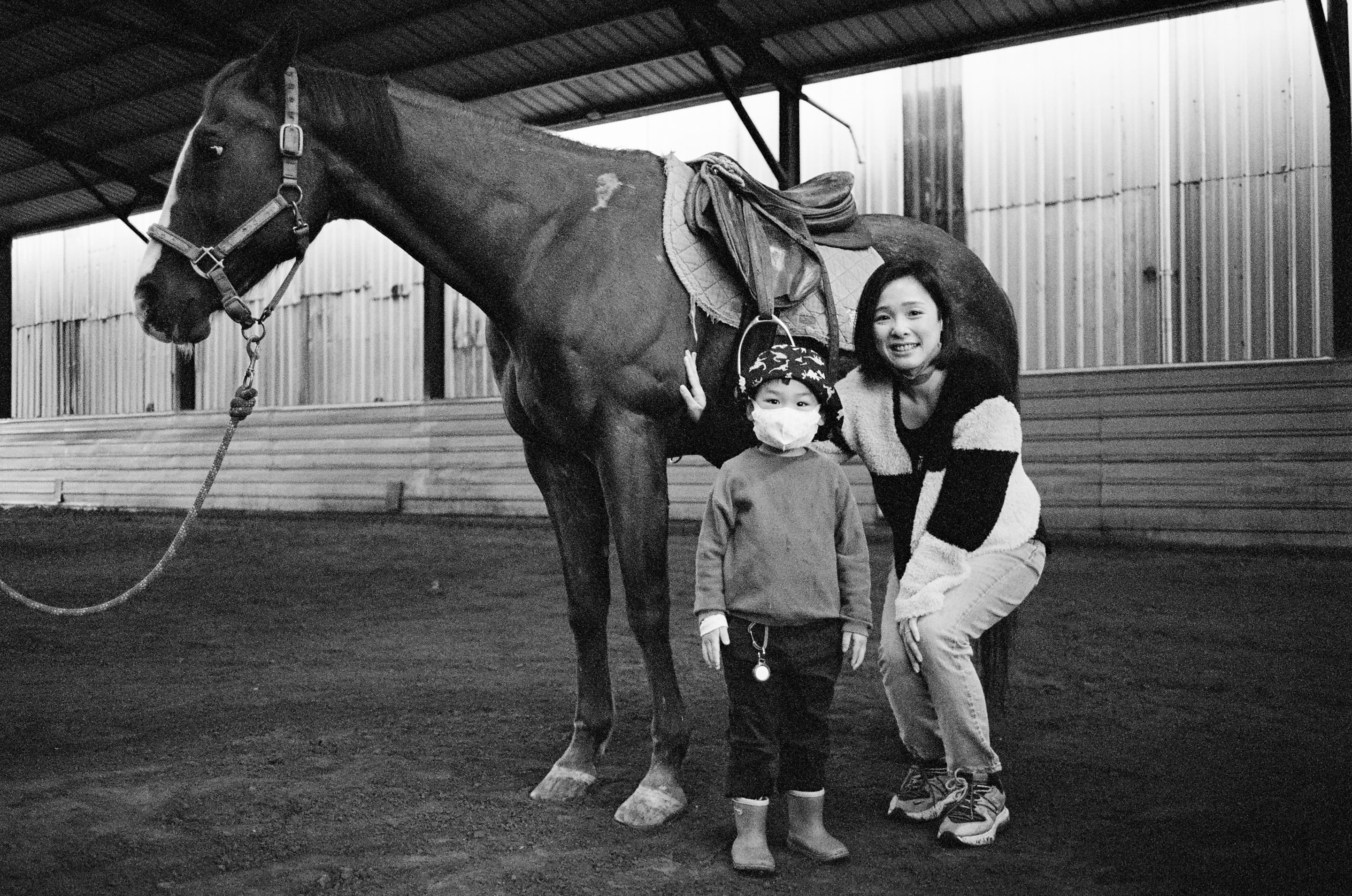 今日是兒子班上自行約校外教學的時間,我們去認識馬。Olympus OM 35mm f2.8(1/30,f2.8)